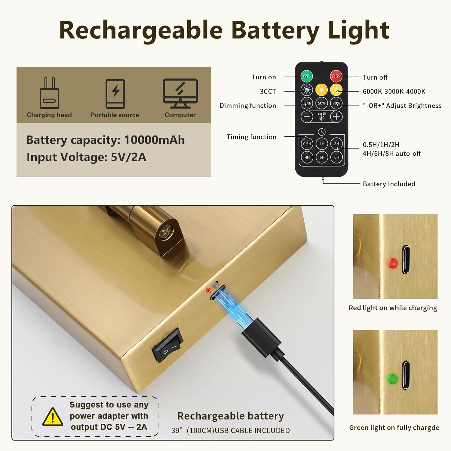 Battery Image Gentle:This wi-fi image lights for wall with built-in 10000mAh rechargeable battery, longer working time. Simple charging Suitable with common Sort C charging cable(package deal included). It is beneficial to make use of a 5V 2A charger.You can too set a timer from half an hour to eight hours.