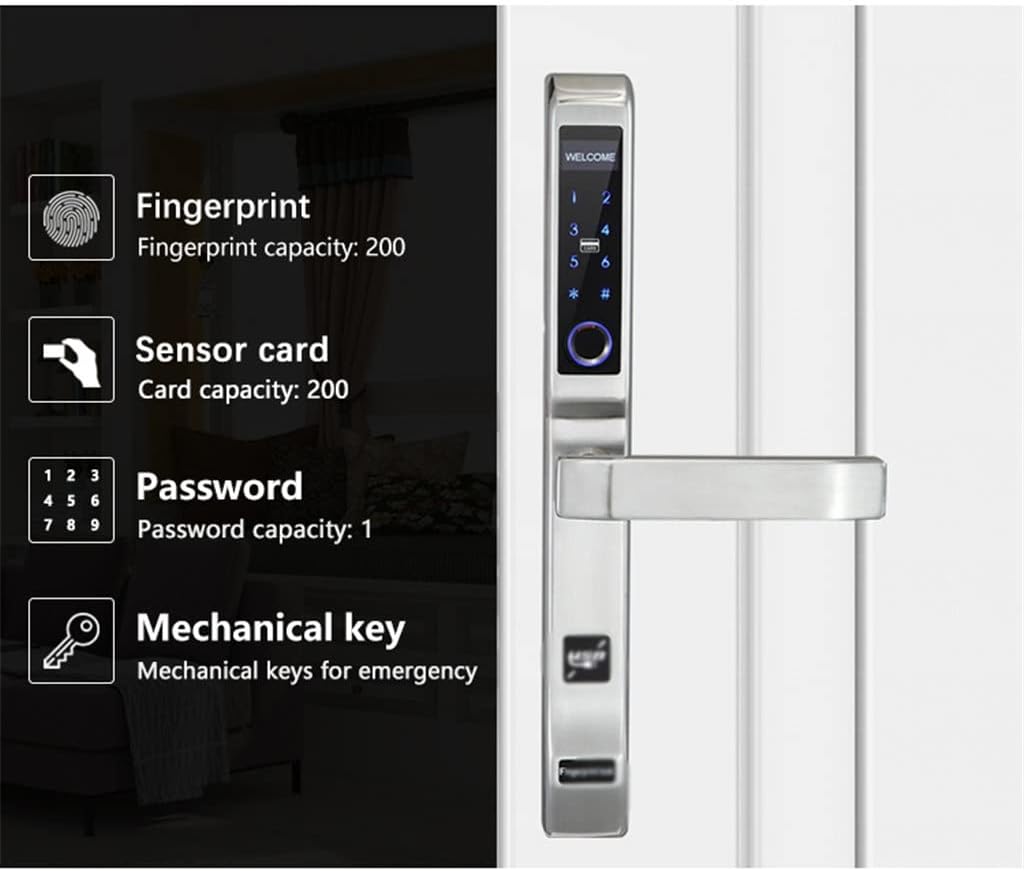 1. Unlock by Fingerprint, Code, Card, and mechanical key.