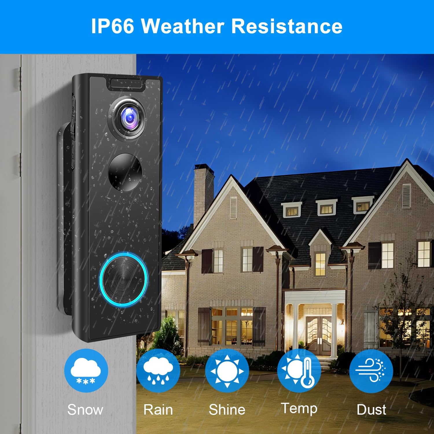 【Native Storage&IP66 Waterpoorf】WiFi sensible video doorbells assist as much as 128G SD(Not Included) storage and Cloud storage (free cloud storage video readability could lower,you may swap to native storage).The sensible doorbell digital camera makes use of high-quality materials materials casing, IP66 weatherproof , can be utilized safely in all climate situations.