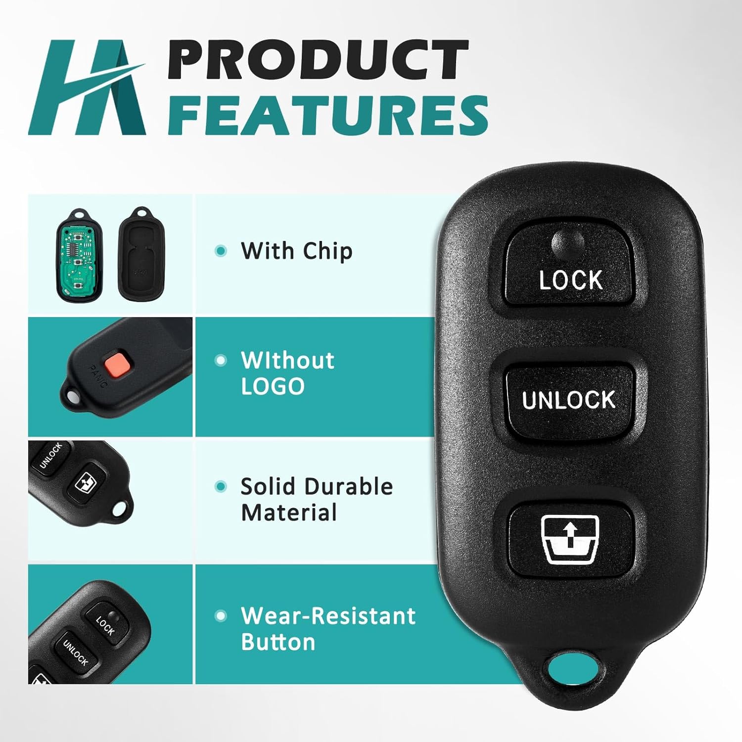Key Fob Compatibility: Substitute Sensible Distant key fob match for Toyota Sequoia 2001-2007, for Toyota 4Runner 1999-2009. FCC ID: HY12BAN HYQ12BBX HYQ1512Y