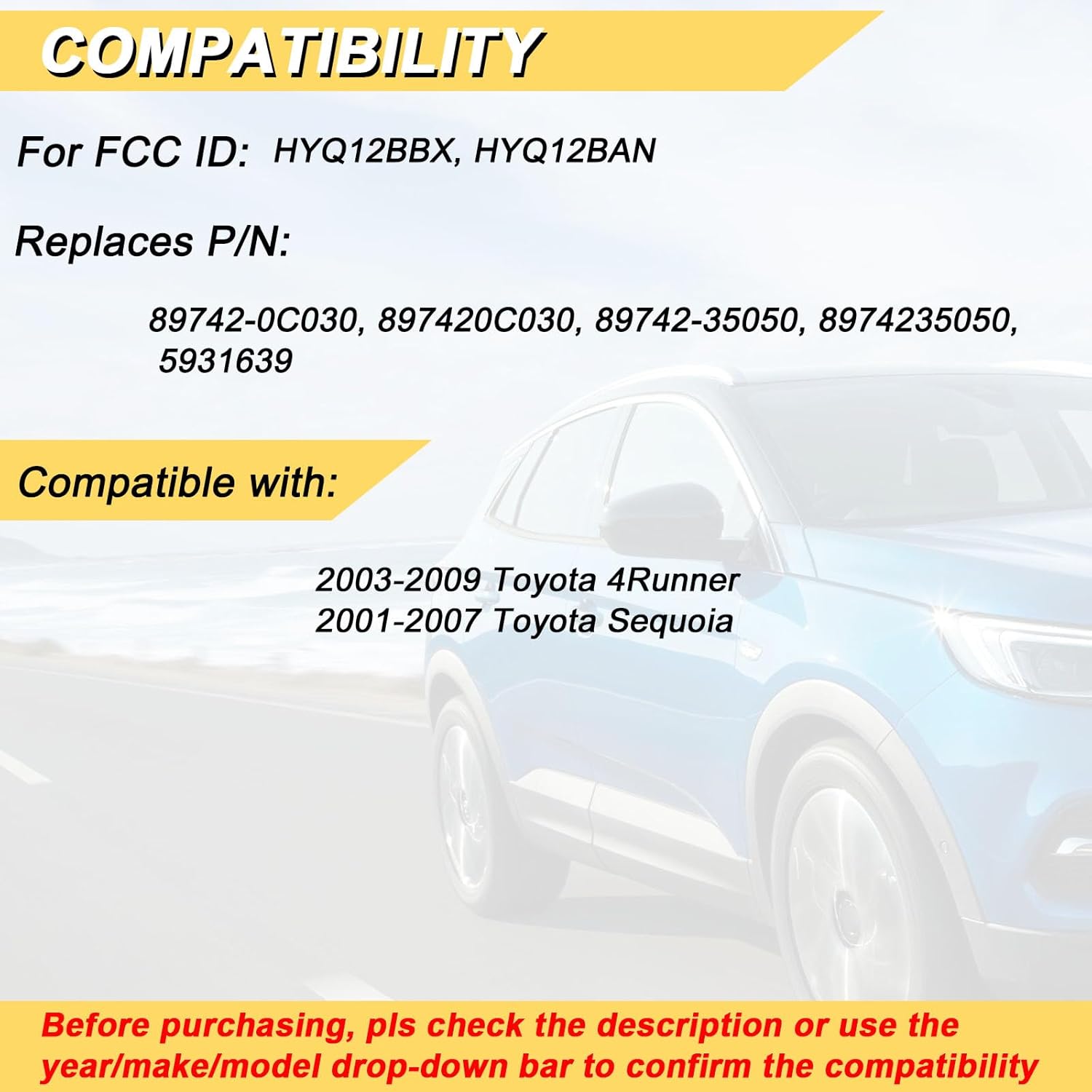 【Substitute】For FCC ID:HYQ12BBX, HYQ12BAN; P/N:89742-0C030, 897420C030, 89742-35050, 8974235050, 5931639; Frequency:315 MHZ; Please Make Positive That Your Unique Distant Has the Identical Buttons on it