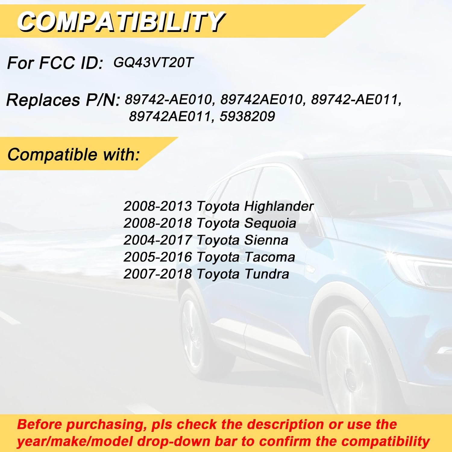 【Alternative】For FCC ID:GQ43VT20T; P/N:89742-AE010, 89742AE010, 89742-AE011, 89742AE011, 5938209; Frequency:315 MHZ; Please Make Certain That Your Unique Distant Has the Identical Buttons on it