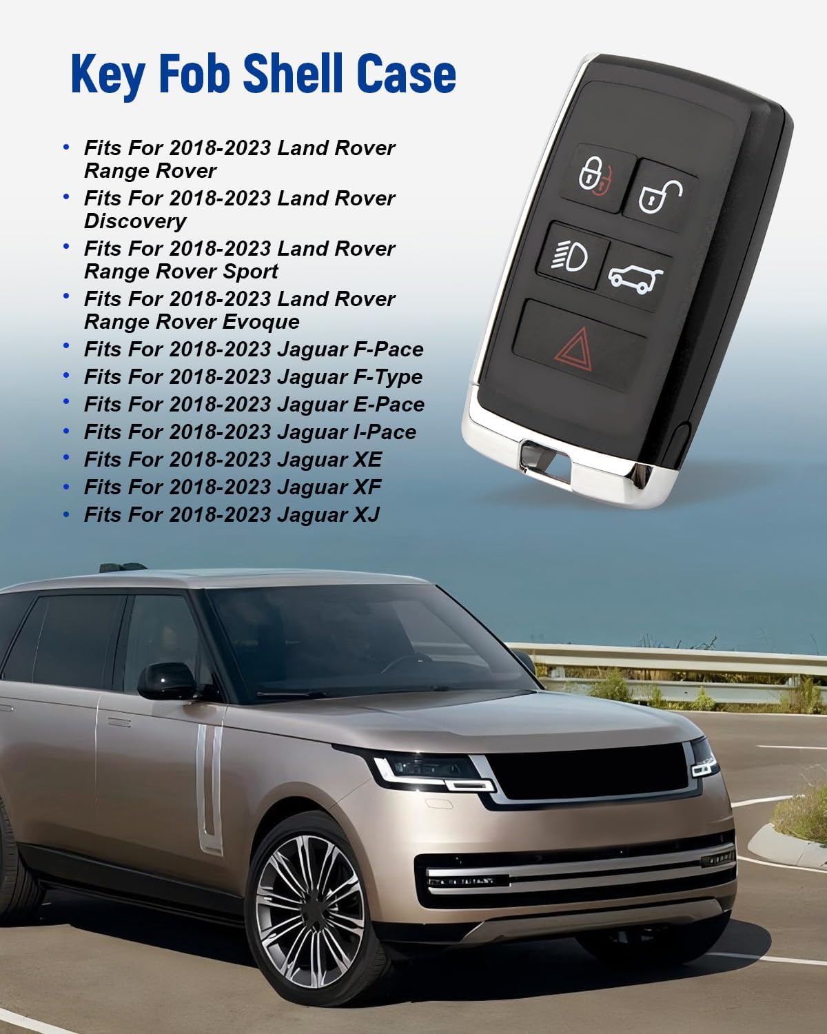 COMPATIBILITY: Key Fob Case Suits for 2018-2023 Land Rover Vary Rover Discovery Vary Rover Sport Vary Rover Evoque; Key Shell Suits for 2018-2023 Jaguar F-Tempo F-Kind E-Tempo I-Tempo XE XF XJ