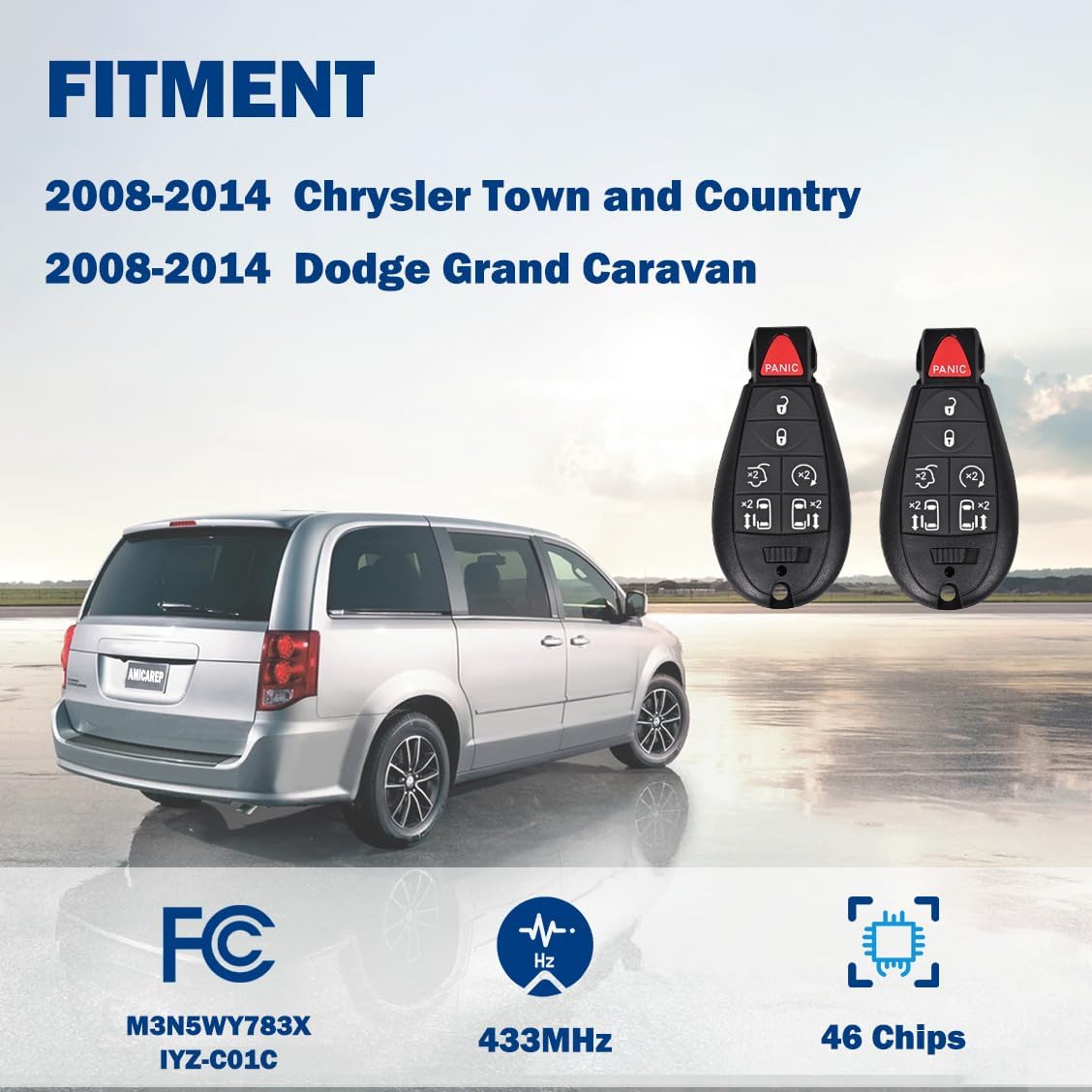 COMPATIBILITY – This Key Fob Alternative Is Suitable with 【2008-2014 Chrysler City and Nation】、【2008-2014 Dodge Grand Caravan】. FCC ID: M3N5WY783X , IYZ-C01C. 433MHz, 46 Chip. Should be programmed.Please make certain the distant programming can work in your car earlier than reducing the important thing.