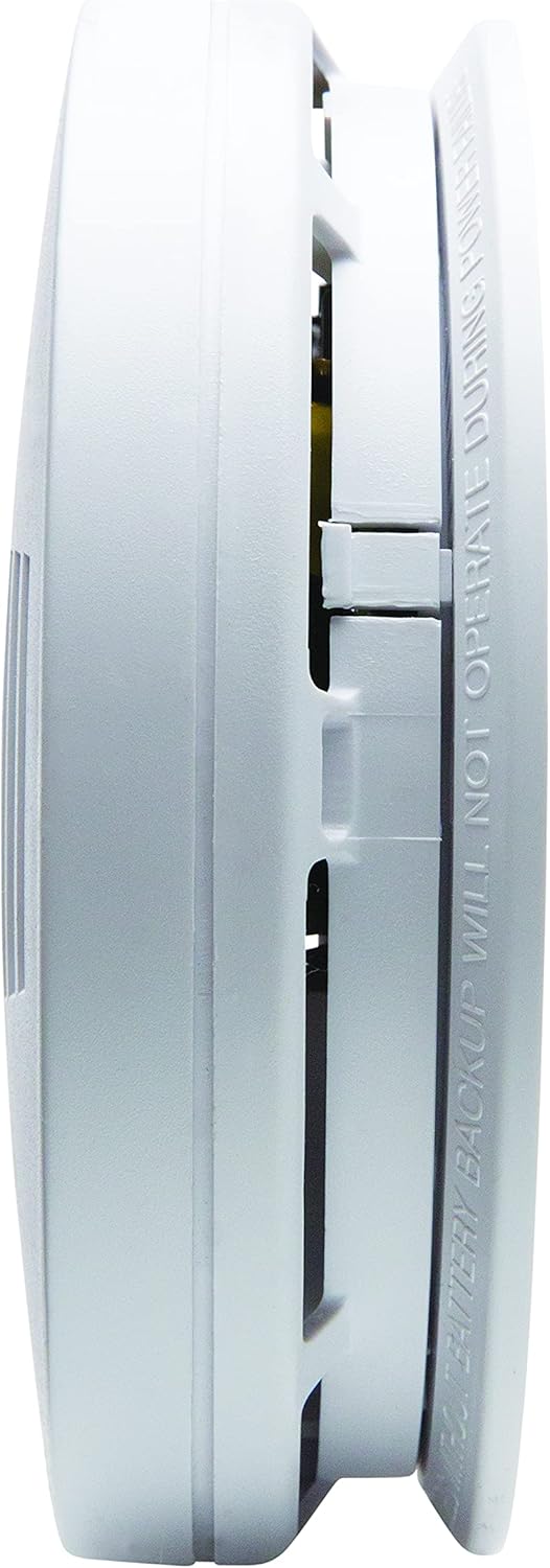 Carbon monoxide alarm operates on a 120V wired energy supply with a 9-Volt alkaline battery (included)