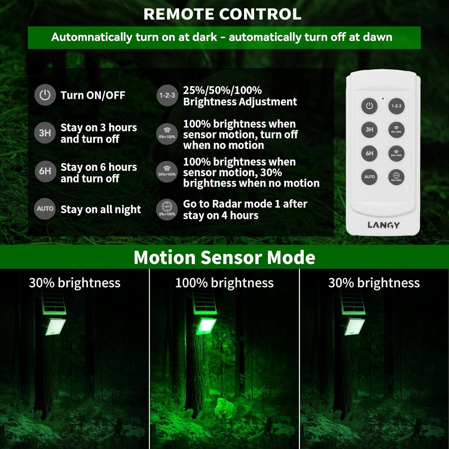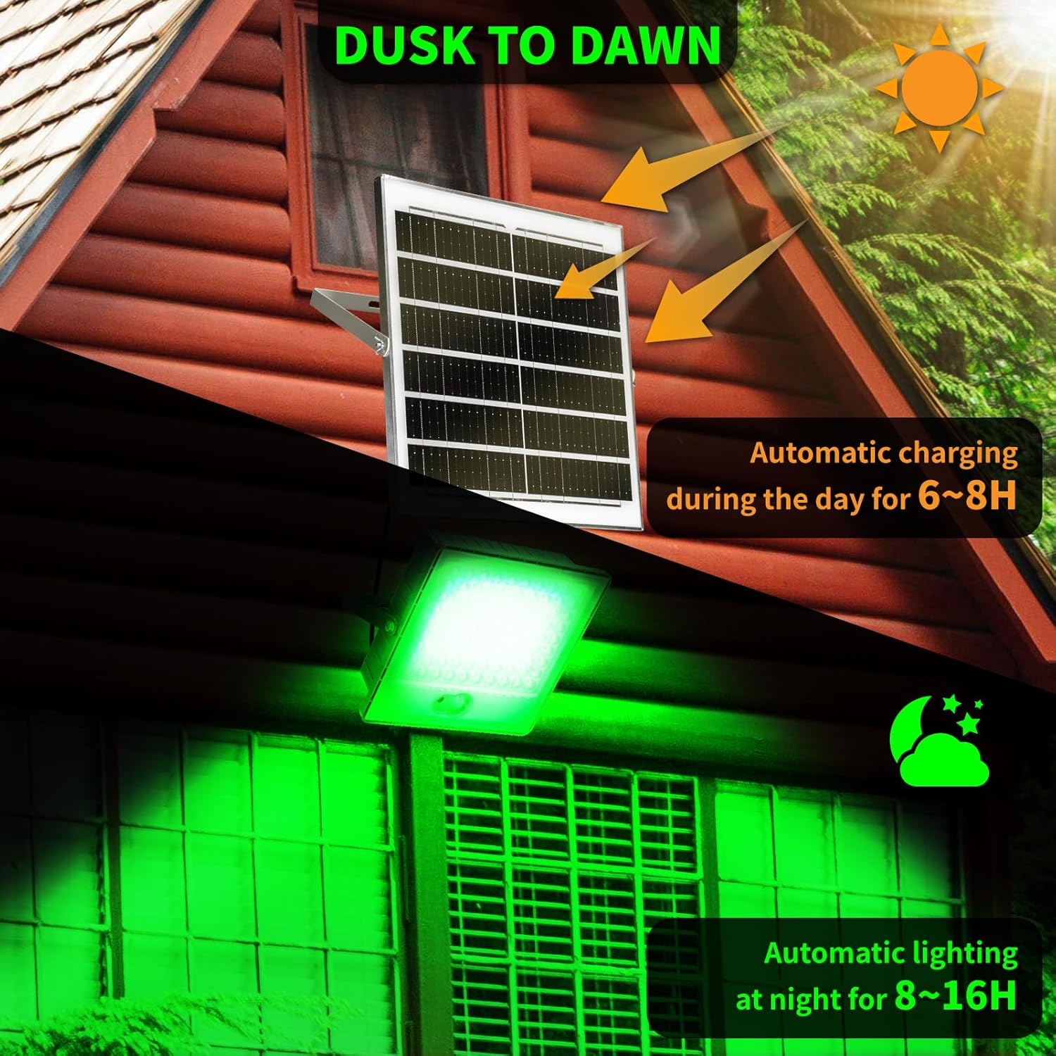 【MOTION ACTIVATED & DUSK TO DAWN & REOMTE CONTROLLER】The nightfall to daybreak photo voltaic flood gentle inexperienced hog lights charging through the day and lightweight up at evening routinely. Consistently gentle, movement sensor, brightness all will be custom-made by distant.With the upgrated sensible controller, the inexperienced gentle will be completely TURN OFF or hold 30% brightness when no movement is detected. When the Hogs/Deers approaches, the sunshine will routinely activate 100% brightness