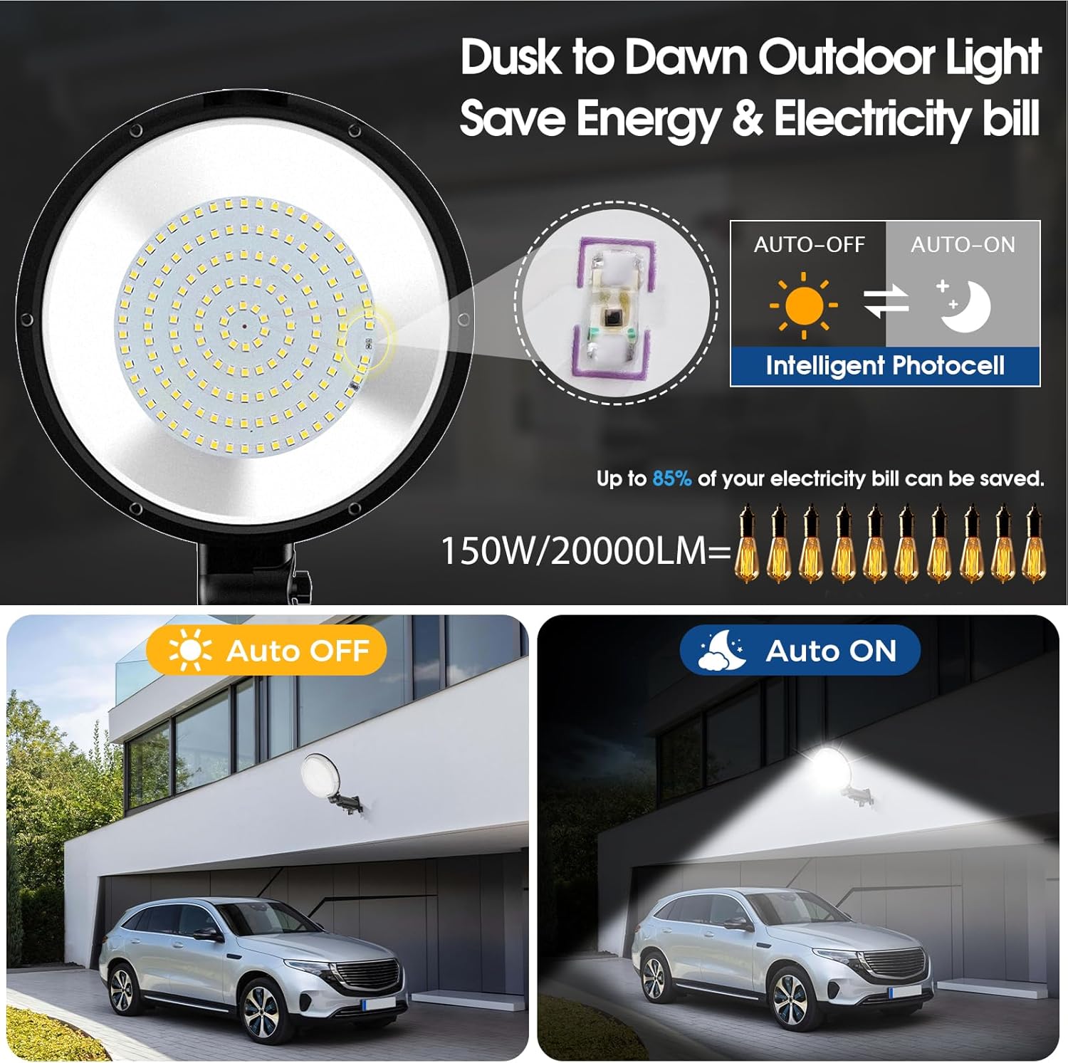 【Nightfall to Daybreak Clever Mild】: Geared up with a newly developed 3-generation nightfall to daybreak sensor photocell, this gentle robotically illuminates after sundown and turns off at daybreak, selling vitality conservation and environmental friendliness. Its clever management system reduces energy consumption and gives a singular lighting expertise.nightfall to daybreak led outside lighting