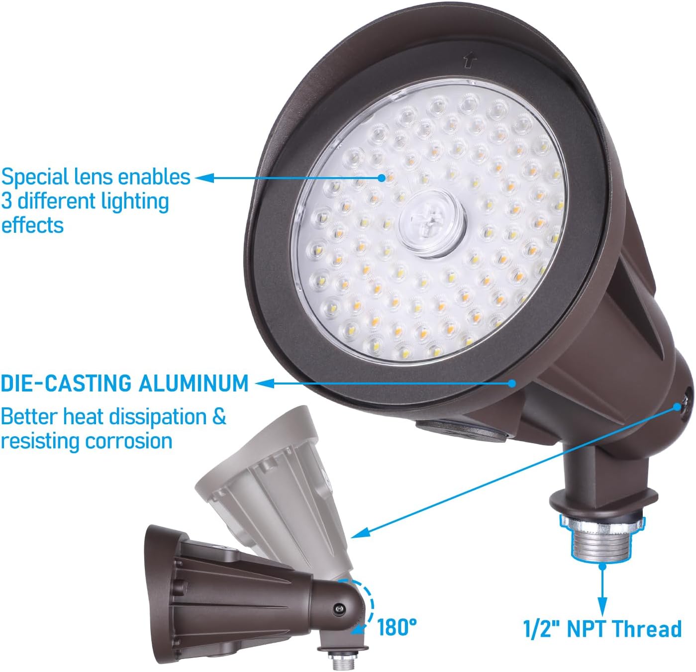 Select from 3 NEMA beam, adjustable brightness, and colour temperature settings 3000K, 4000K, 5000K to create the right out of doors lighting for any area. Excellent for exterior LED lighting, backyard flood lights, and out of doors accent lighting.
