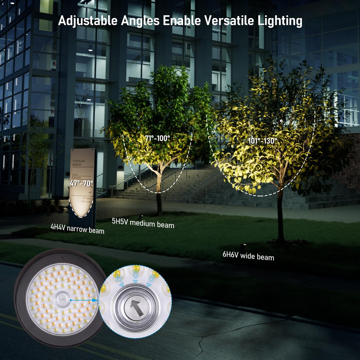 Adjustable NEMA Beam Distribution: Select from 3 NEMA beam settings: 4H4V (47°-70°), 5H5V (71°-100°), and 6H6V (101°-130°). Excellent for low, medium, and excessive mounting heights, providing versatile, NEMA-compliant illumination for numerous functions