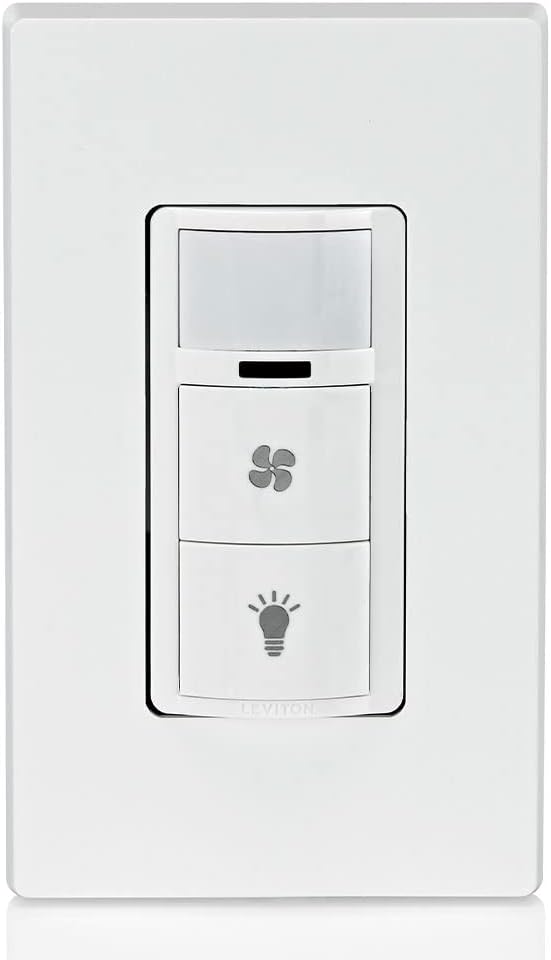 Leviton Decora in-Wall Combination Occupancy Sensor with Fan Switch, Auto-On or Manual-On, 1/4 HP, Residential Grade, Single Pole, White, DOD05-1LW
