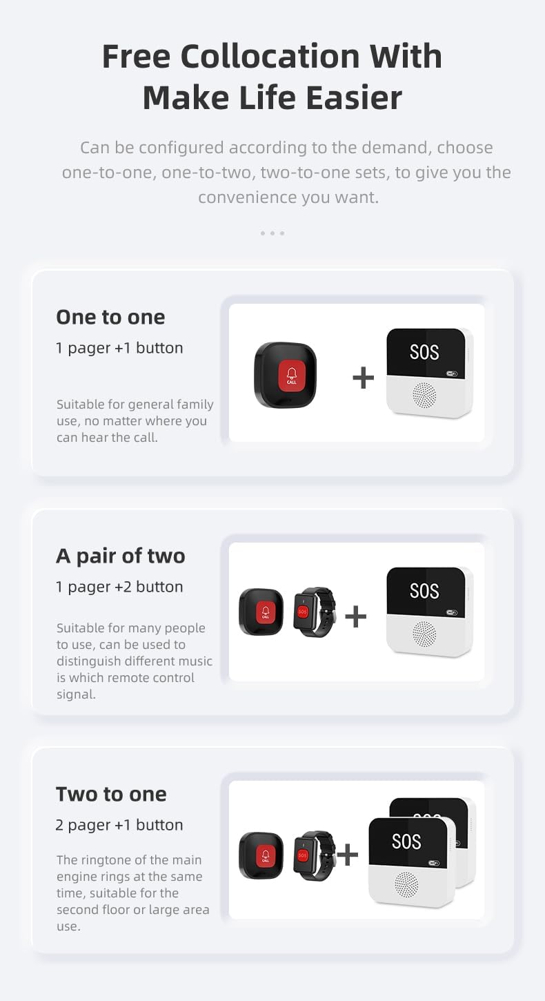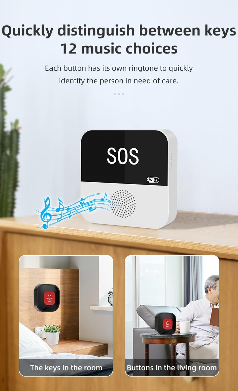 【Versatile Pager System】 Our life alert system provides 5 varieties of customizable ringtones, together with adjustable quantity, alarm period, and brightness settings, catering to your distinctive preferences.