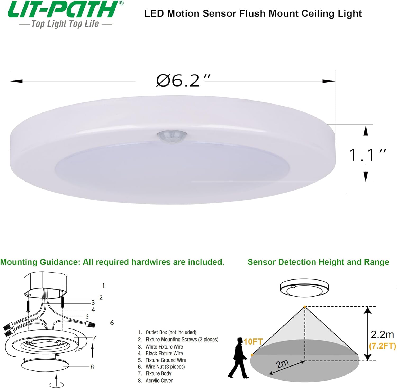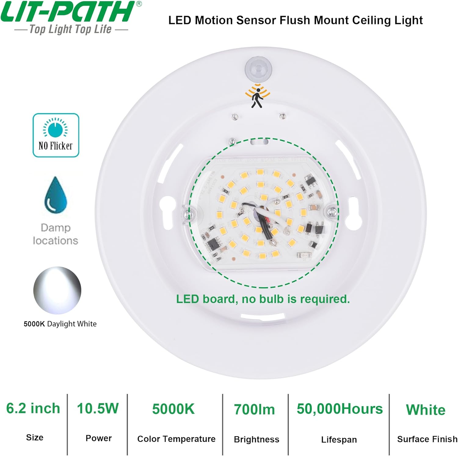 LIT-PaTH Movement Sensor Closet Mild, Anti-Rust, 10.5W, 700 Lumen, 6.2 inch