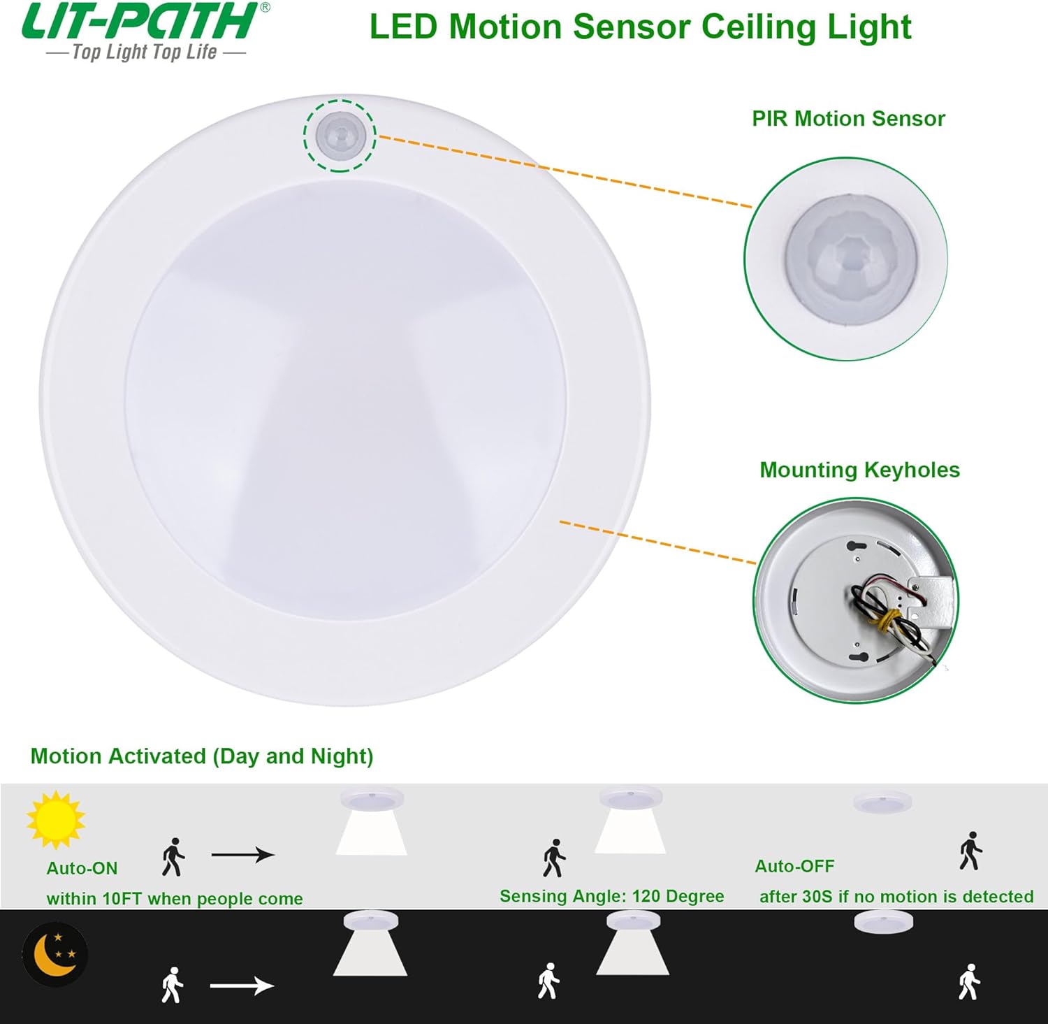 MOTION ACTIVATED: The LED ceiling mild is movement activated. Auto-on inside 10 ft when individuals come, auto-off after 30 seconds if no movement is detected. Sensing Angle: 120 Diploma