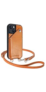 iPhone 13 mini Crossbody Leather-based Cellphone Case – Tan