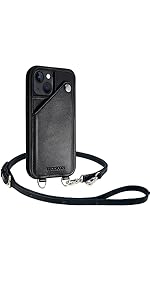 iPhone 13 mini Crossbody Leather-based Cellphone Case – Black
