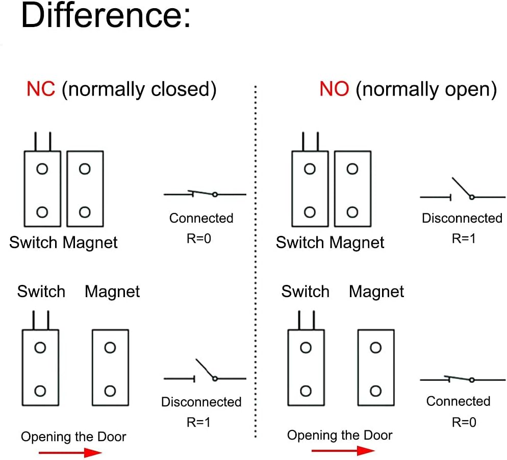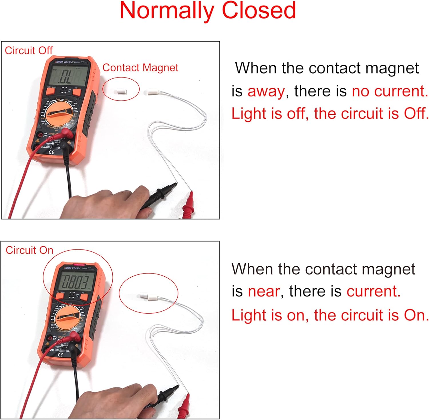 ☀NORMALLY CLOSED(NC) – When the swap is near the magnet, the circuit is conductive(gentle on); when the swap is separated from the magnet, the circuit will not be conductive(gentle off).