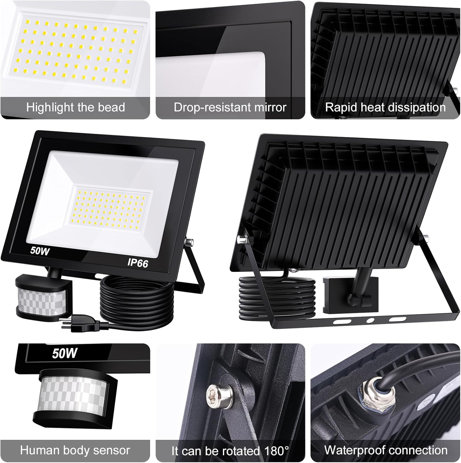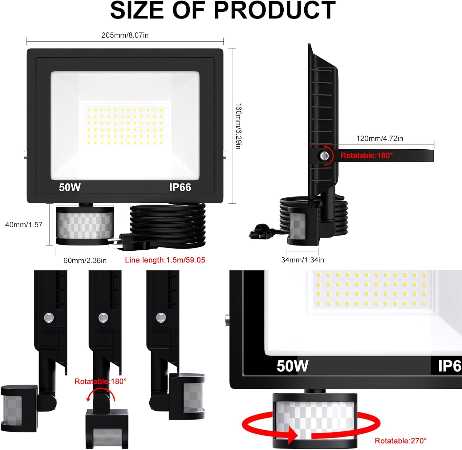 Sturdy IP66 Waterproof:This floodlight is fabricated from high-transparency tempered glass & sturdy casted aluminum high-quality sensor. The casted aluminum is excessive rigidity and warmth dissipation. IP66 Rainproof, could be mounted outside.