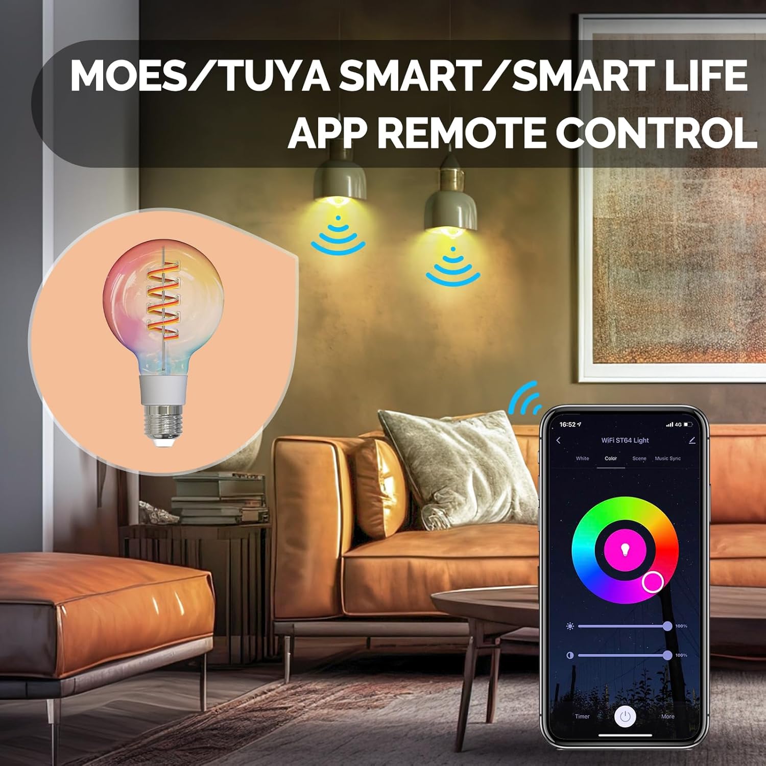【Management from Anyplace】Can management the WiFi G80 bulb anyplace you want.If you end up exterior,you don’t should examine whether or not each lamp is off or not, simply one-tap management in your Good Life App.