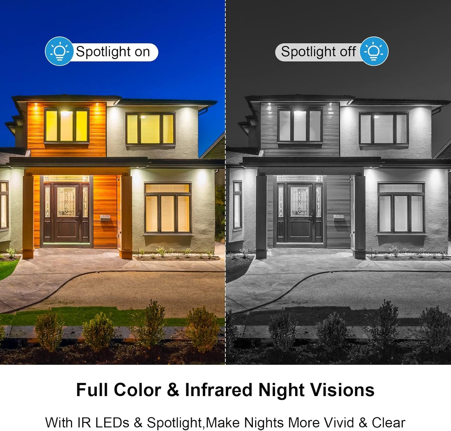 【1080P HD Shade Evening Imaginative and prescient Premium High quality Digital camera】The wifi digicam outside makes use of 1080P optical lens, which might offers clear HD photos and movies. And the white highlight assist take colourful photos and movies with a variety of 23-32 toes at the hours of darkness, safeguarding your property safely anytime.