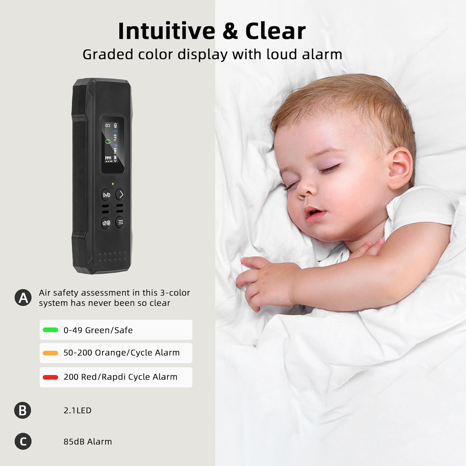 【Customized CO Alarm Knowledge】The multifunctional air high quality detector helps customized carbon monoxide alarm values. Simply quick press to show the moment alarm worth (Fee Alarme 50, 100, 150, 200 4 digital choices). Lengthy press the interface, the quantity flashes, press the web page key to alter the alarm worth. Its alarm perform can remind you of the presence of CO and make it easier to shield your self in time.