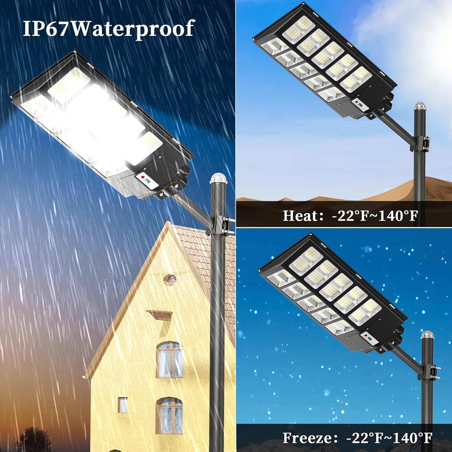 【Improve Led Beads】: Ofuray Of-6000W photo voltaic road lights out of doors makes use of 180pcs super-bright 5054 high-power led lamp beads. It gives excessive brightness and low energy consumption which makes road lights extra vitality environment friendly, longer life and safer to make use of.The double-sided 45-degree angle design has brighter mild as much as 400000lm. The double-sided 45-degree angle design has brighter mild and a wider vary than odd road lights, which may carry 220-degree ultra-wide-angle lighting and canopy an space of 3500sq.ft