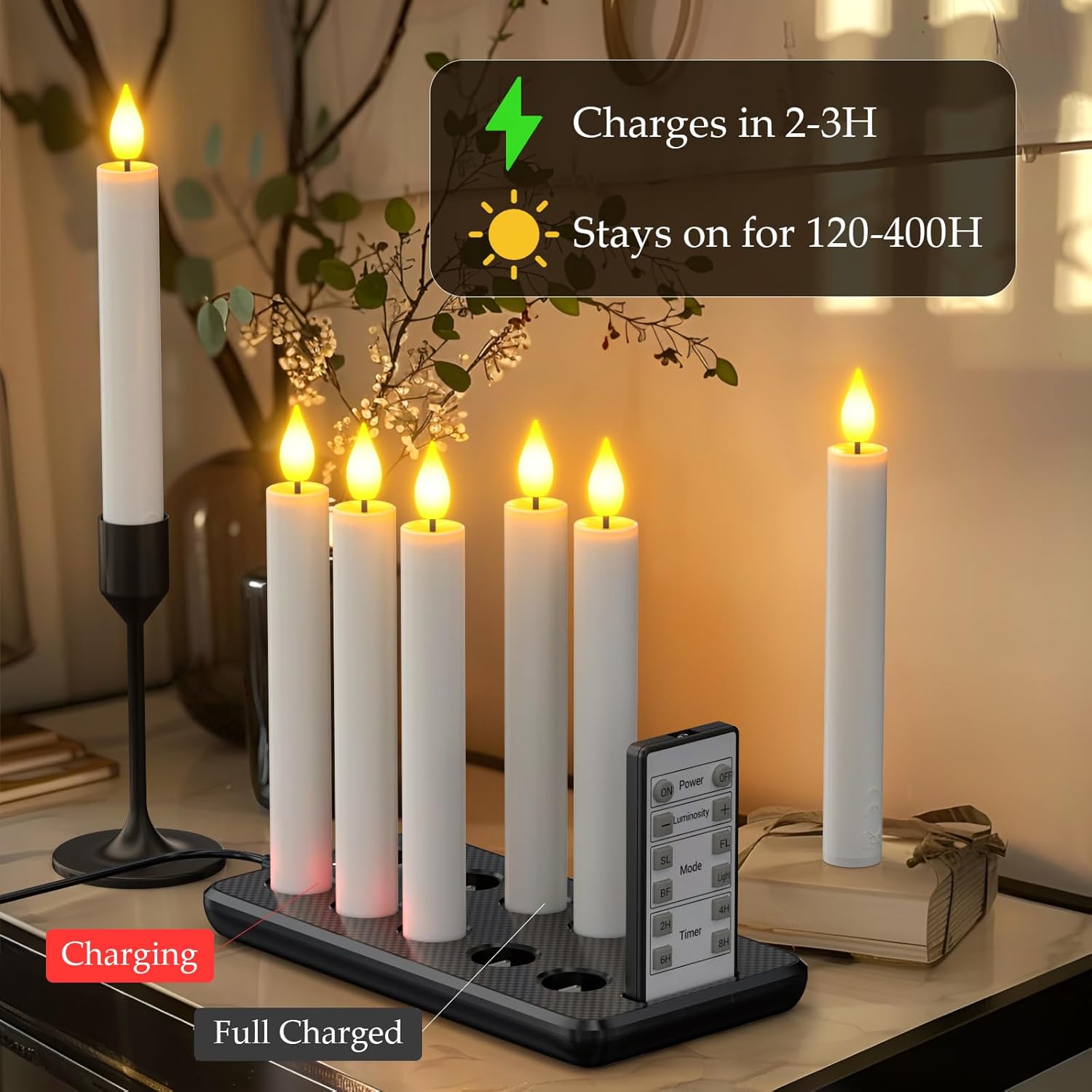Flameless LED Taper Candles Set -【You Will Get: 10pcs Flameless Candles with Distant + 1*Charging Station + 1*USB Charging Cable. Designed field is sweet as a present.】Our flameless candles have been examined earlier than sale. If any high quality issues, please be at liberty to get in contact with our retailer customer support and we are going to give you a passable answer inside 24 hours.