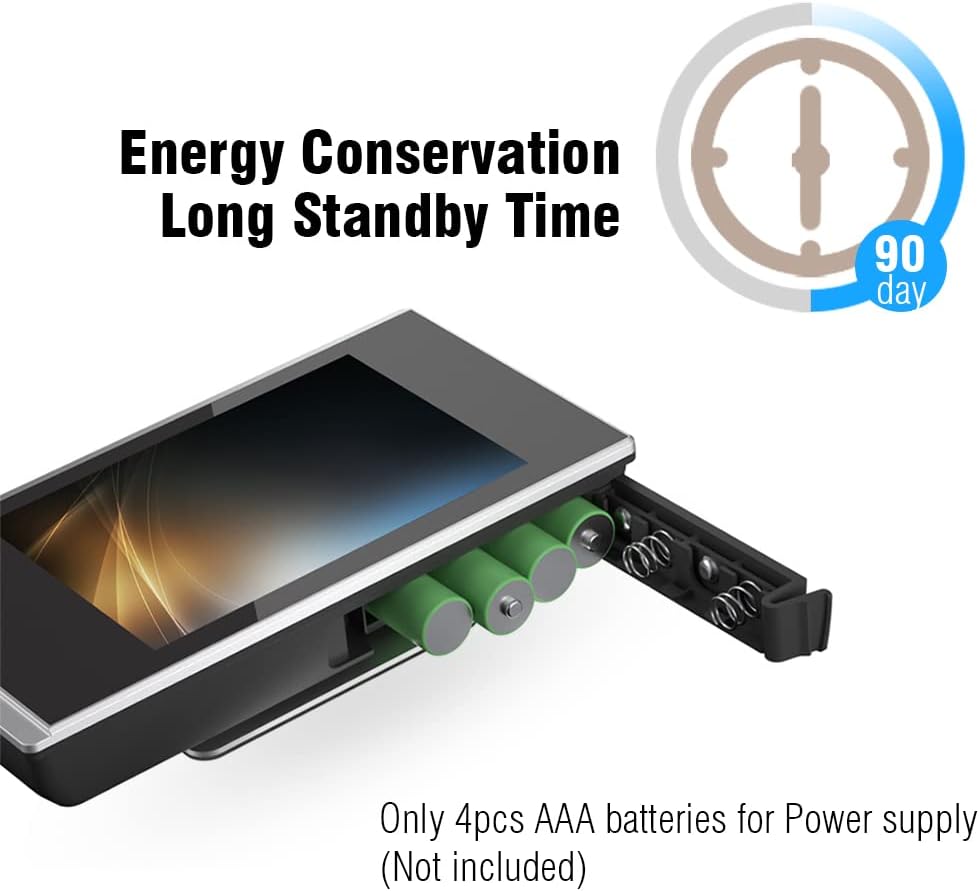 Solely 4pcs AAA batteries for Energy provide(Not included). Don’t have to cost, not fear concerning the hassle that the residence blackouts convey. Vitality conservation,Low energy alert.