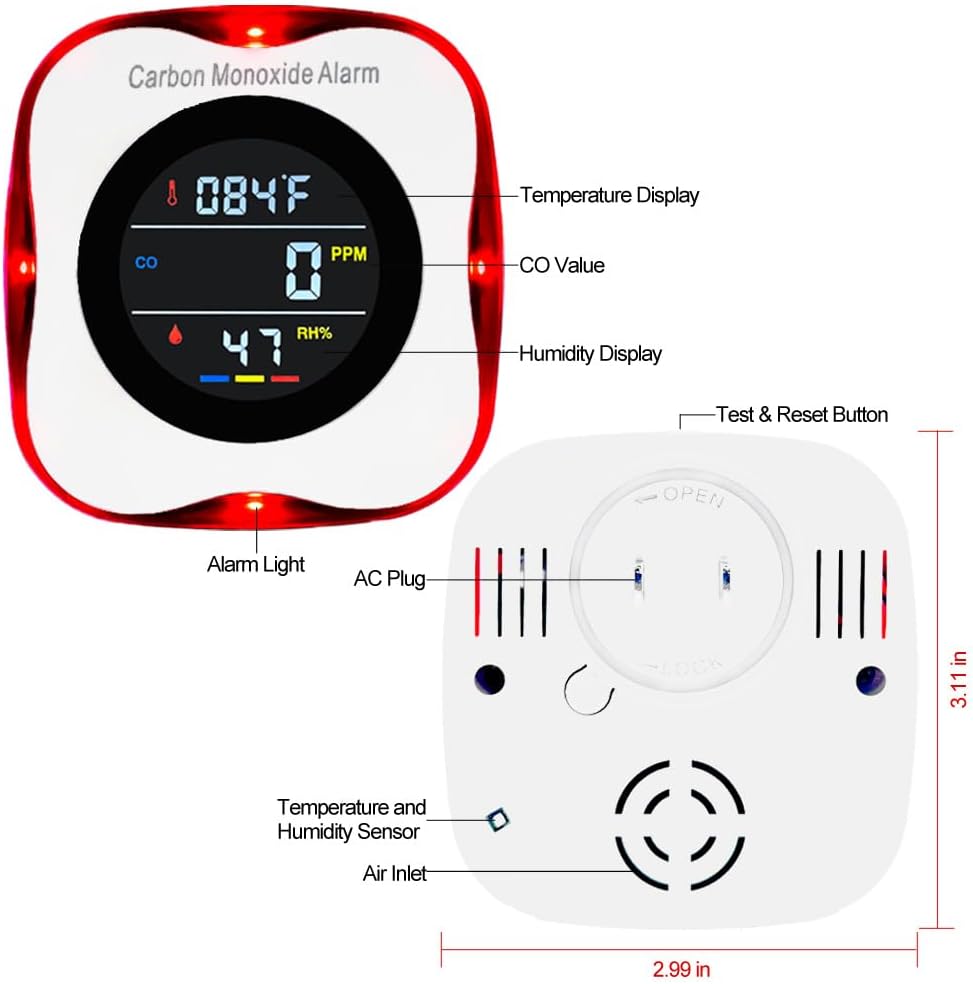 LCD Digital Show & Voice/Mild Warning – When the HD Display screen Shows a Sure Focus of Fuel, the CO Detector Instantly Emits an Audible Alarm of>85 db and a Important Mild Alarm, Permitting you to React Shortly and Shield your Security