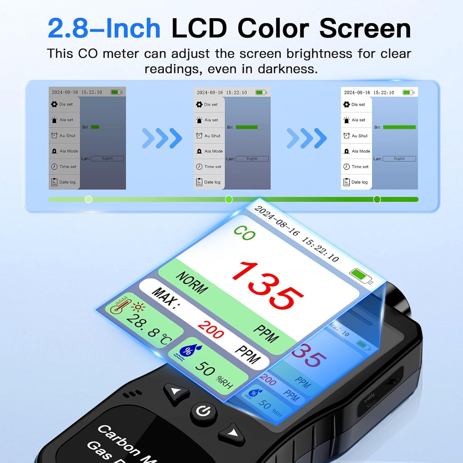 Multi-Operate Air High quality Monitor: Carbon monoxide ranges, temperature, and humidity are displayed on the two.8” LCD coloration display screen. Can modify the display screen brightness for clear readings, even in darkness; Show the utmost CO worth and report as much as 1000 teams of knowledge for simple CO monitoring