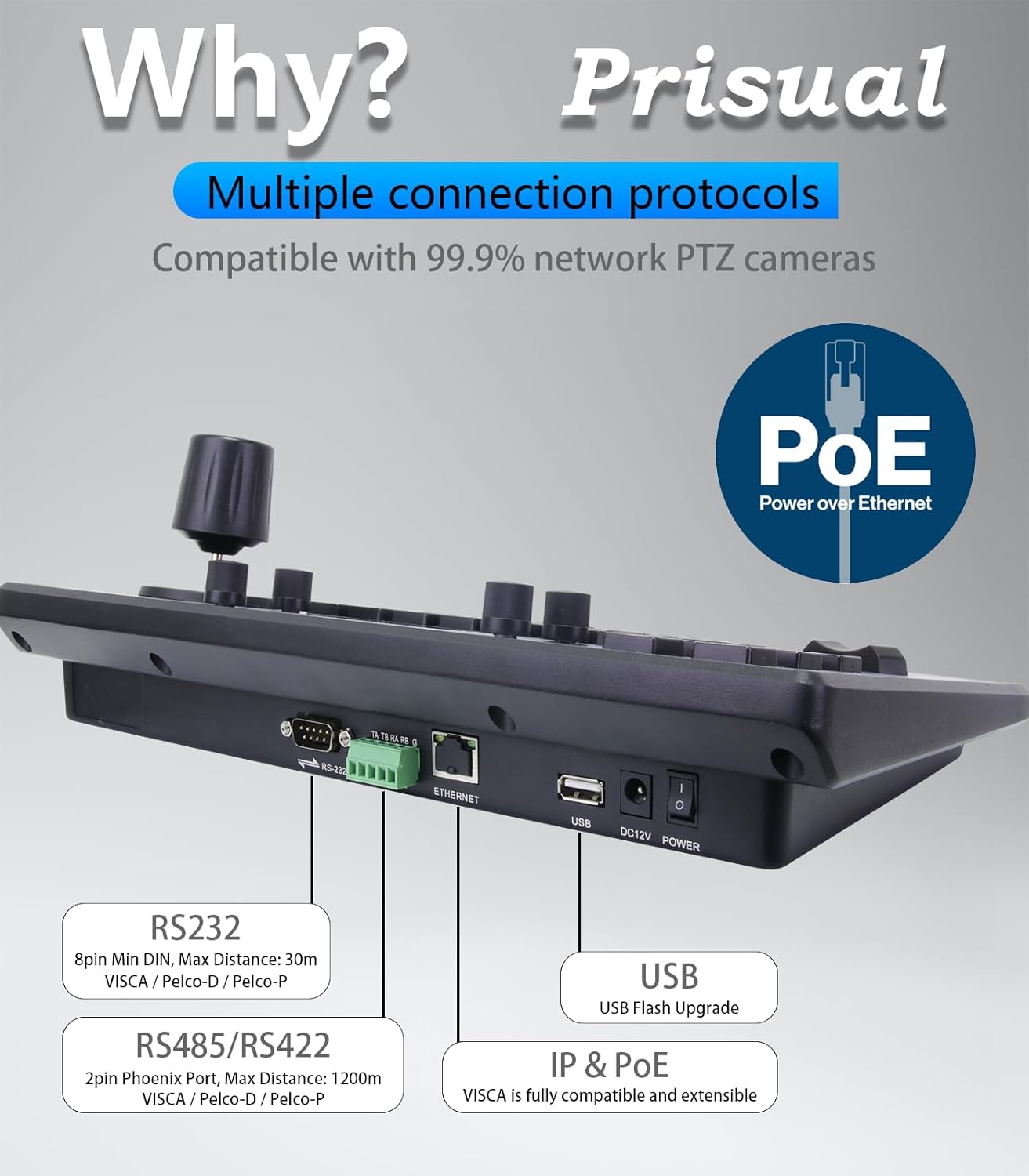 Simplify Setup and Expandability: Say goodbye to cable litter and sophisticated setups. Prisual PTZ Controller helps Ethernet IP connections, permitting you to manage IP streaming PTZ cameras utilizing a single community cable. With Energy over Ethernet (PoE) assist, you possibly can energy the controller and cameras via a single Cat5/6 cable, offering a clear and environment friendly set up course of. providing flexibility and scalability to your rising church wants.