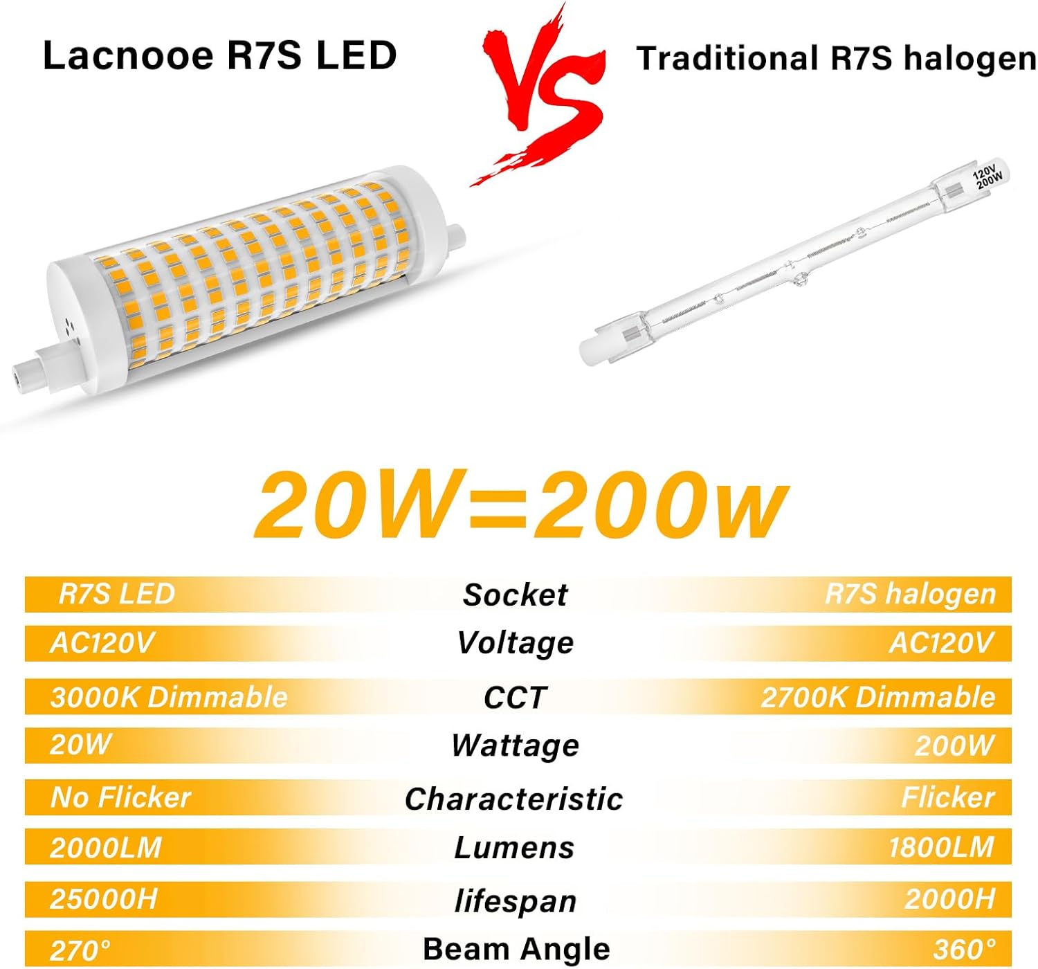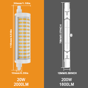 【Power-Saving & Excessive Output】R7S led bulb 118mm 20w emit 2000lm of sunshine output, vibrant sufficient to interchange R7S 150w to 200w halogen bulbs, save your electrical energy invoice.