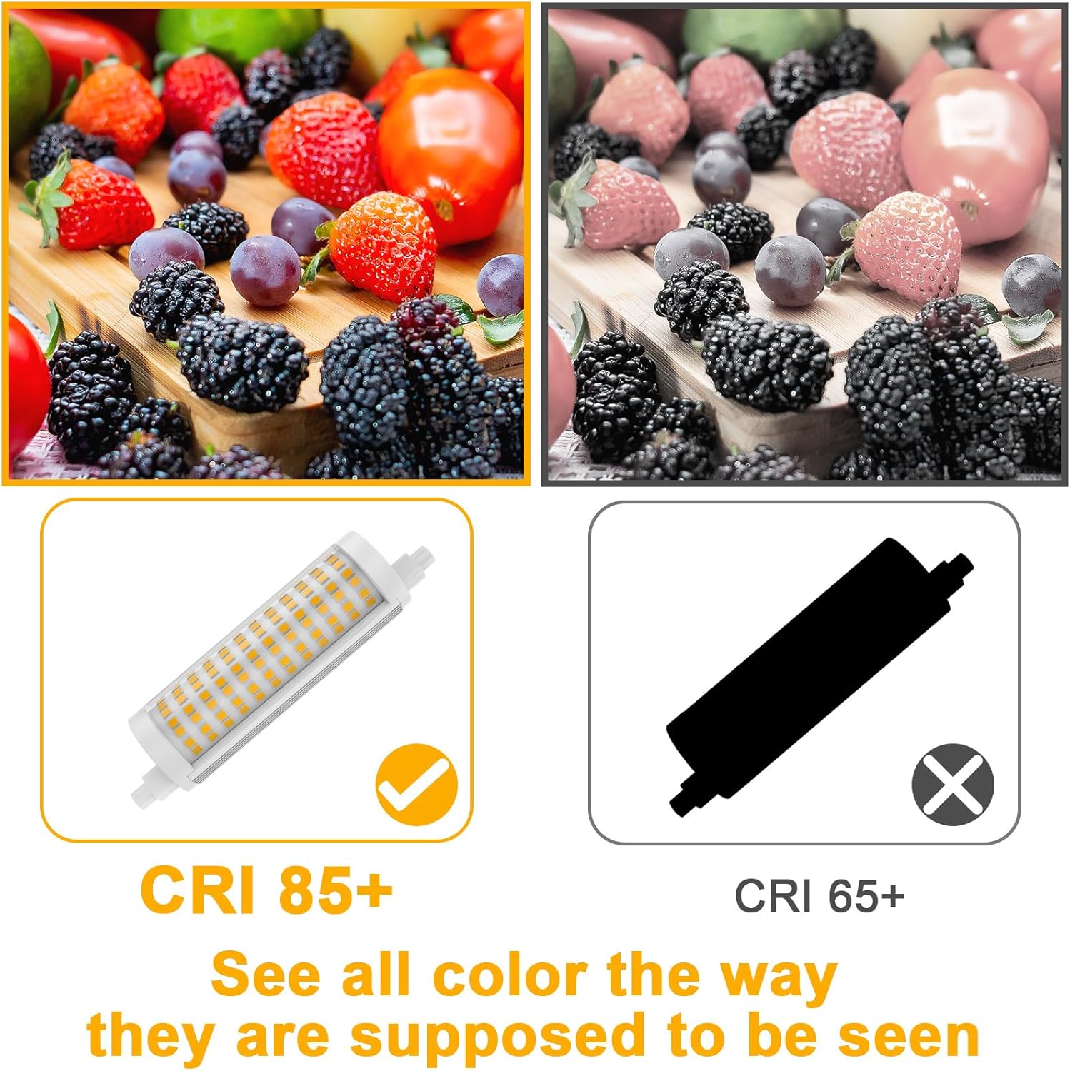 【Excessive CRI & Smooth Heat White Colour】R7S led bulb dimmable, no heat up time, instant-on at full brightness, 85Ra CRI, 3000K tender heat white, no flicker, no buzzing, not scorching.