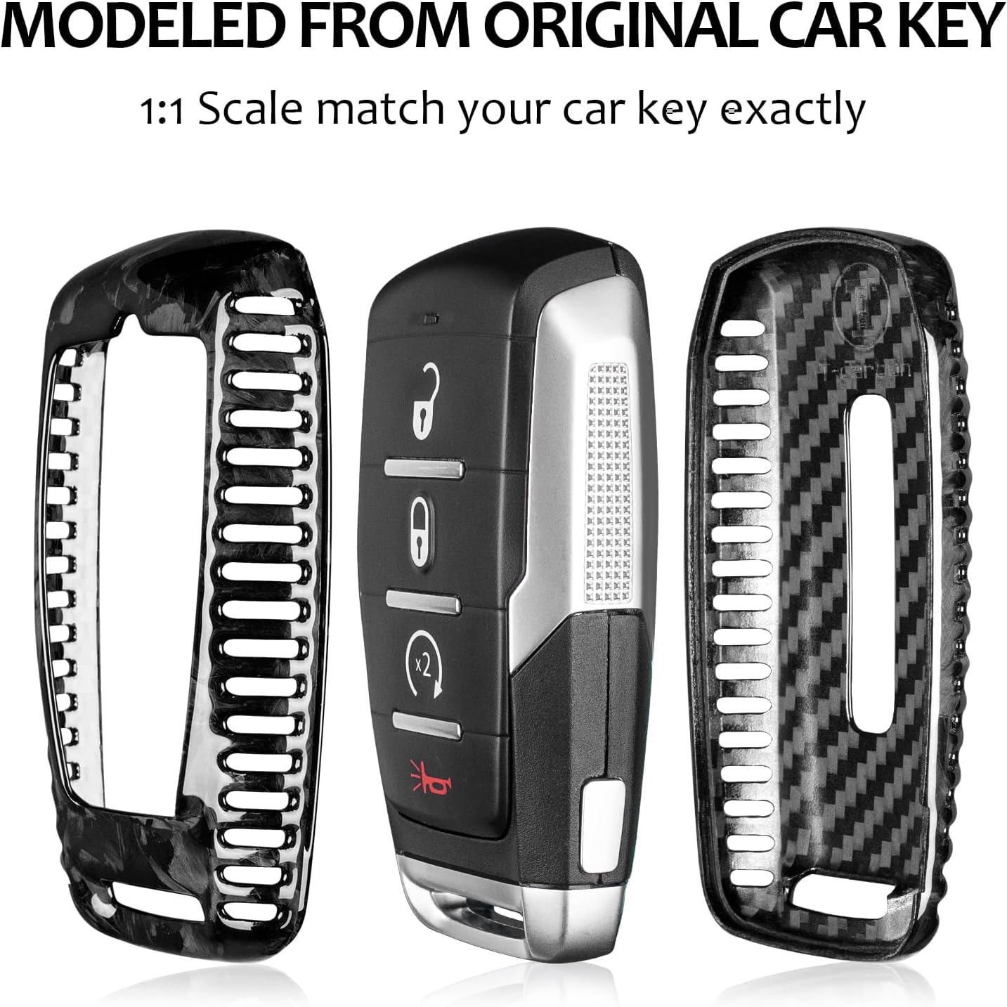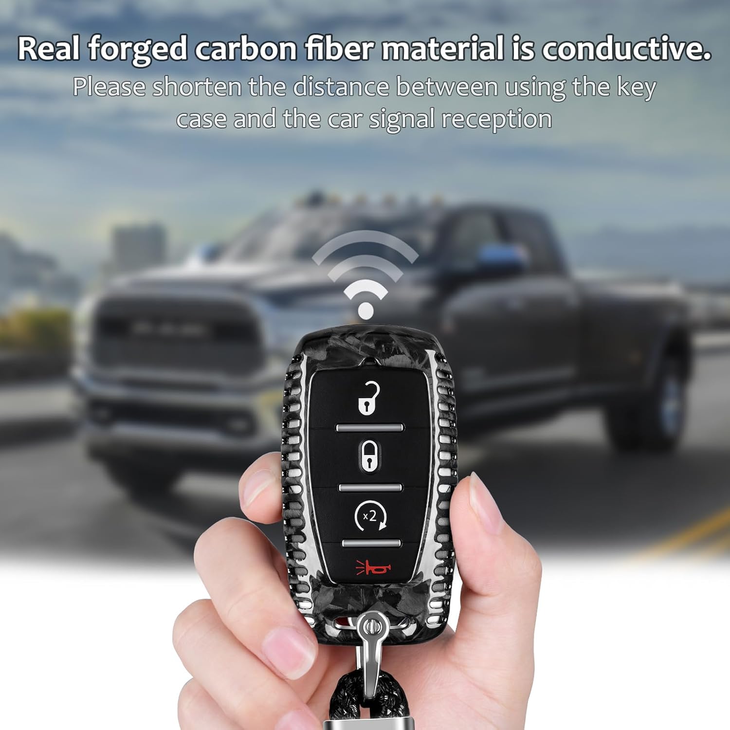 Actual Cast Carbon Fiber Key Fob Protector Keychain Appropriate with Dodge Ram 1500 2500 3500 TRX