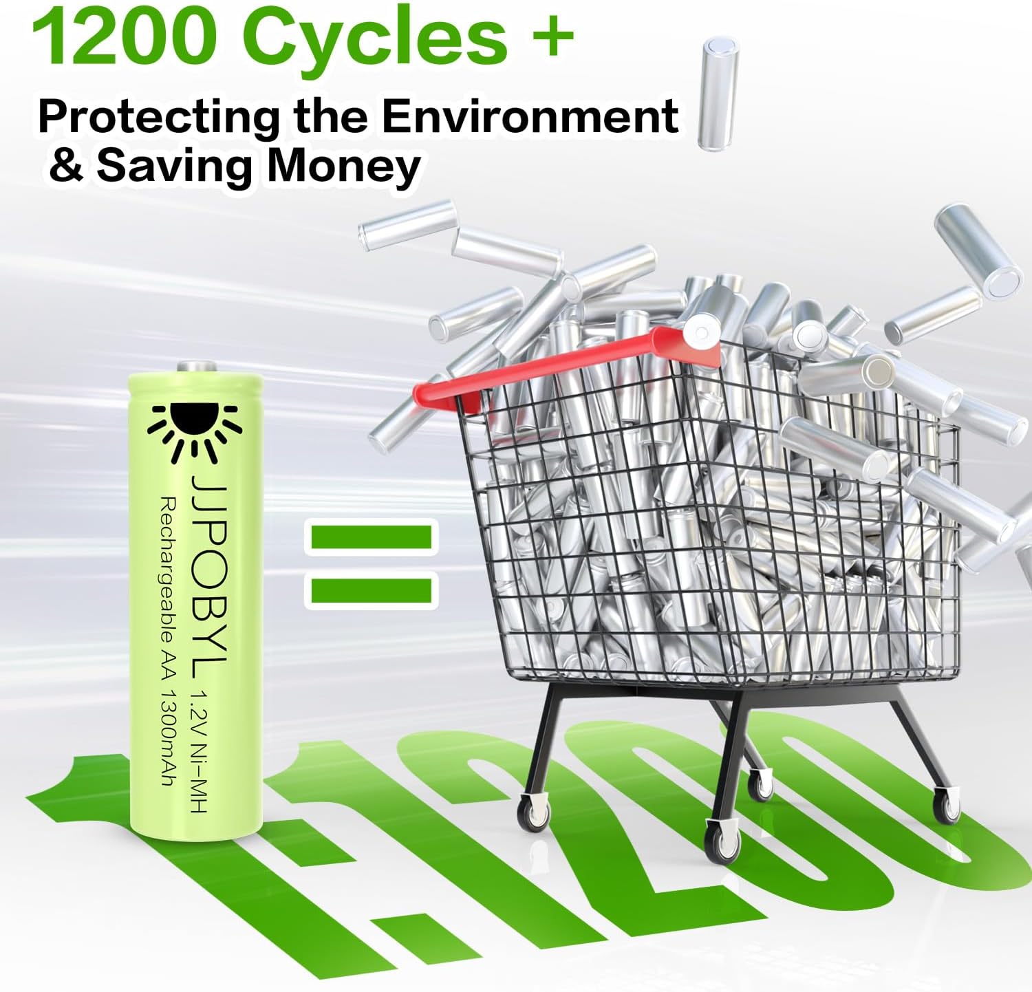 Greater Capability Batteries: 12 counts 1300mAh rechargeable AA batteries present lengthy and powerful energy on your gadgets, one totally cost equals 72H energy for backyard lights! The battery may be charged as much as 1200 occasions! Such a price range