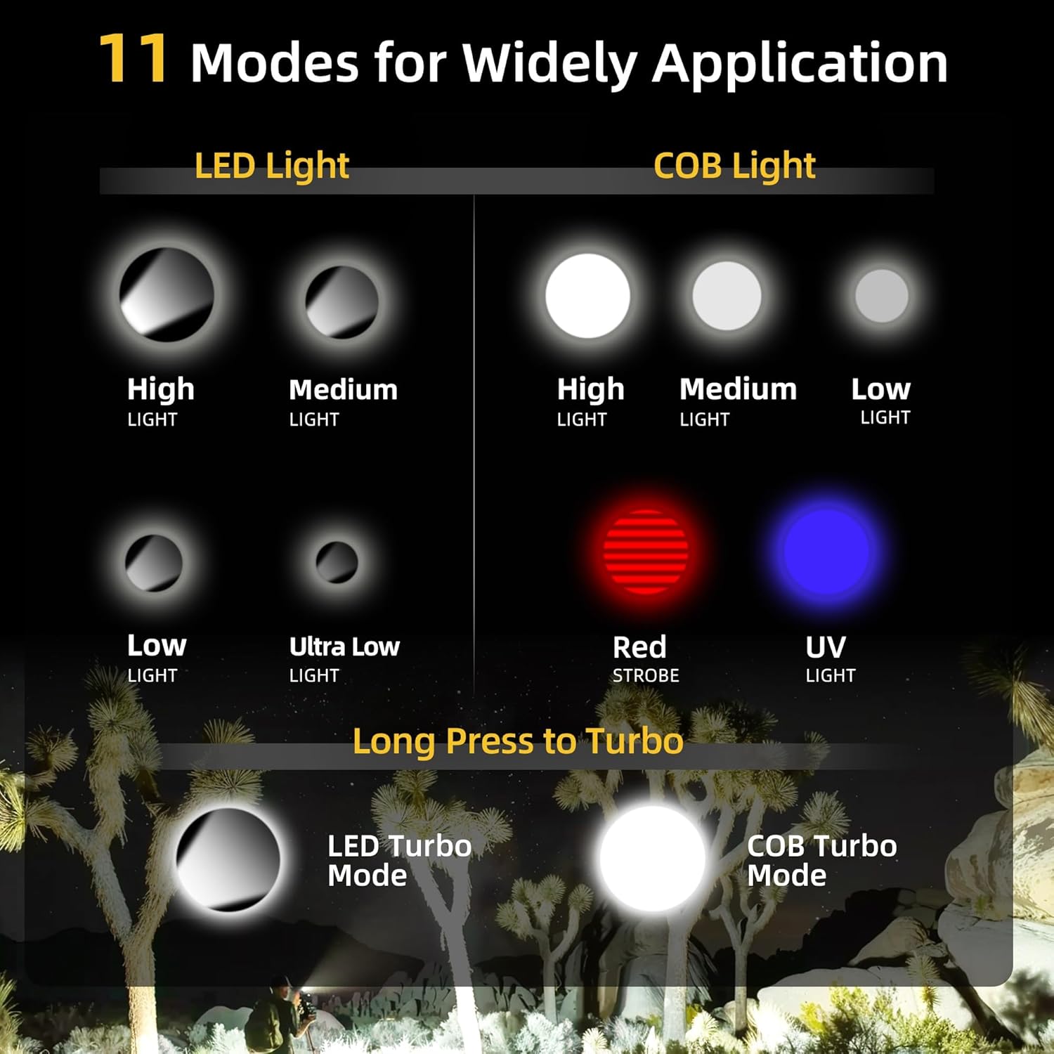 9 Versatile Lighting Modes & Twin Turbo Modes