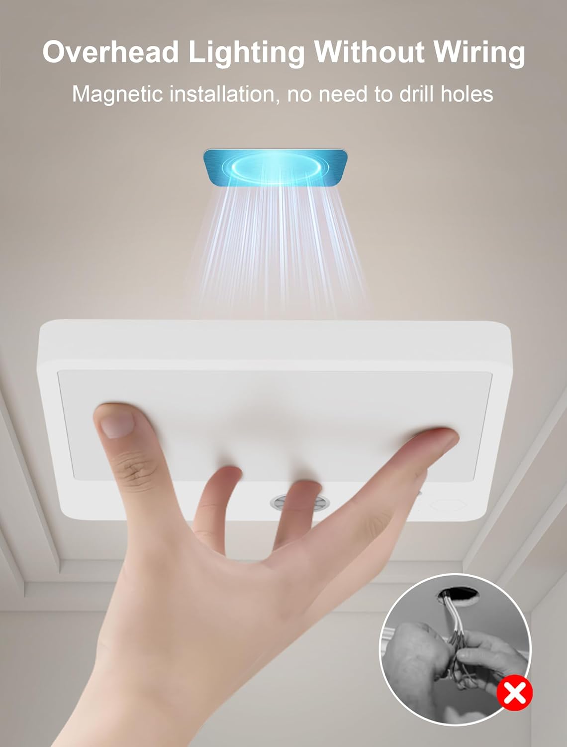 Adjustable Colour Temperature & Brightness with Timer: Tnight overhead lighting with out wiring helps three shade temperatures: 3000K, 4500K, and 6500K, permitting you to modify freely between totally different scenes. Brightness could be adjusted from 8% to 100%, and the sunshine additionally incorporates a reminiscence operate for added comfort. With the distant, you may simply set a timer for 15, 30, or 60 minutes to go well with totally different eventualities, serving to keep away from energy waste and enhancing your sensible dwelling expertise.