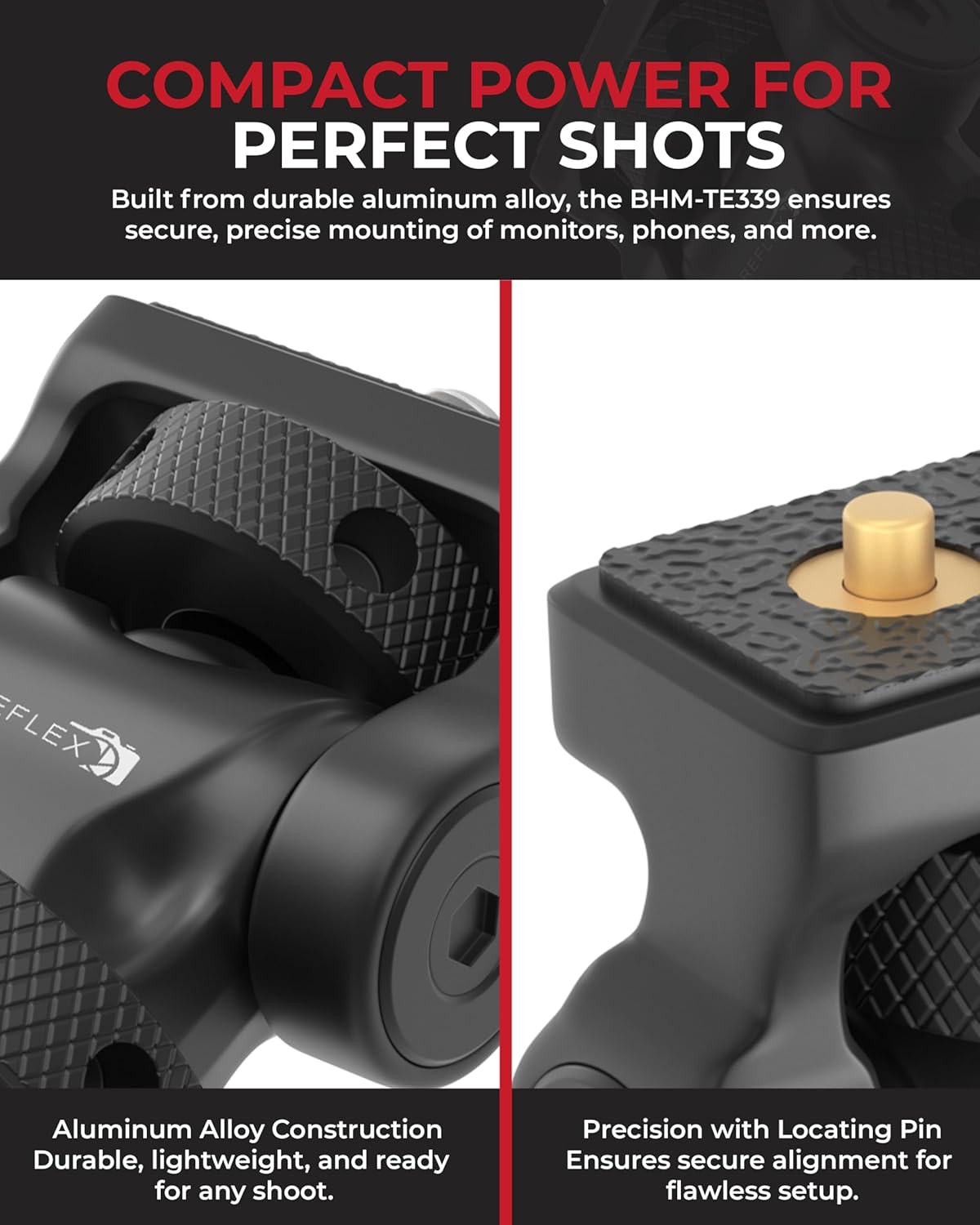 🔥[Secure 1/4” Screw and Locating Pin:] That includes a common 1/4” screw and finding pin, this mount is suitable with a variety of units, guaranteeing secure and wobble-free set up on your area monitor and different digicam tools.