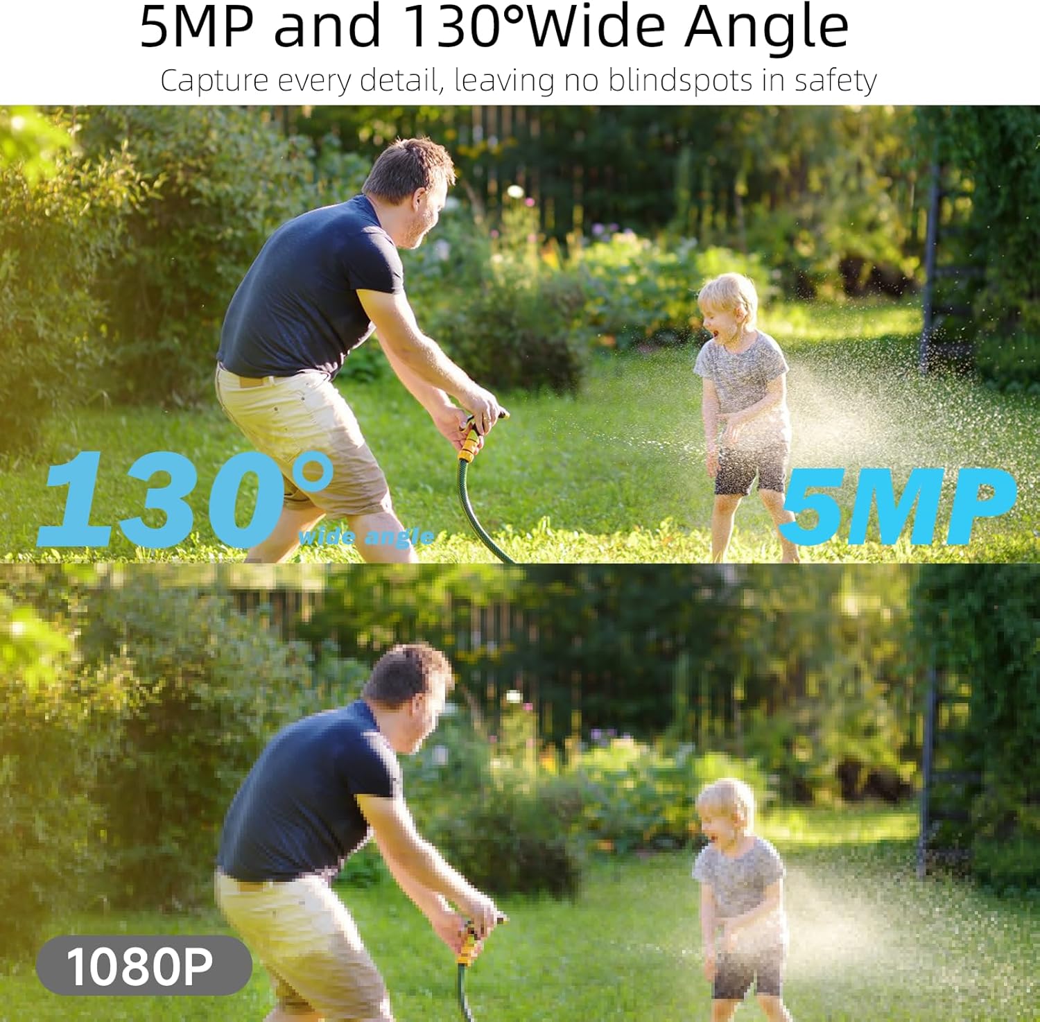 【Extremely HD 5MP Decision & Colourful Night time Imaginative and prescient】Elevate your own home safety with our cutting-edge outside safety digicam. Seize crystal-clear 5MP decision footage, offering unparalleled element. The broad 130° wide-angle ensures complete protection, whereas vibrant coloration night time imaginative and prescient enhances visibility in low-light circumstances, making it a super outside digicam.