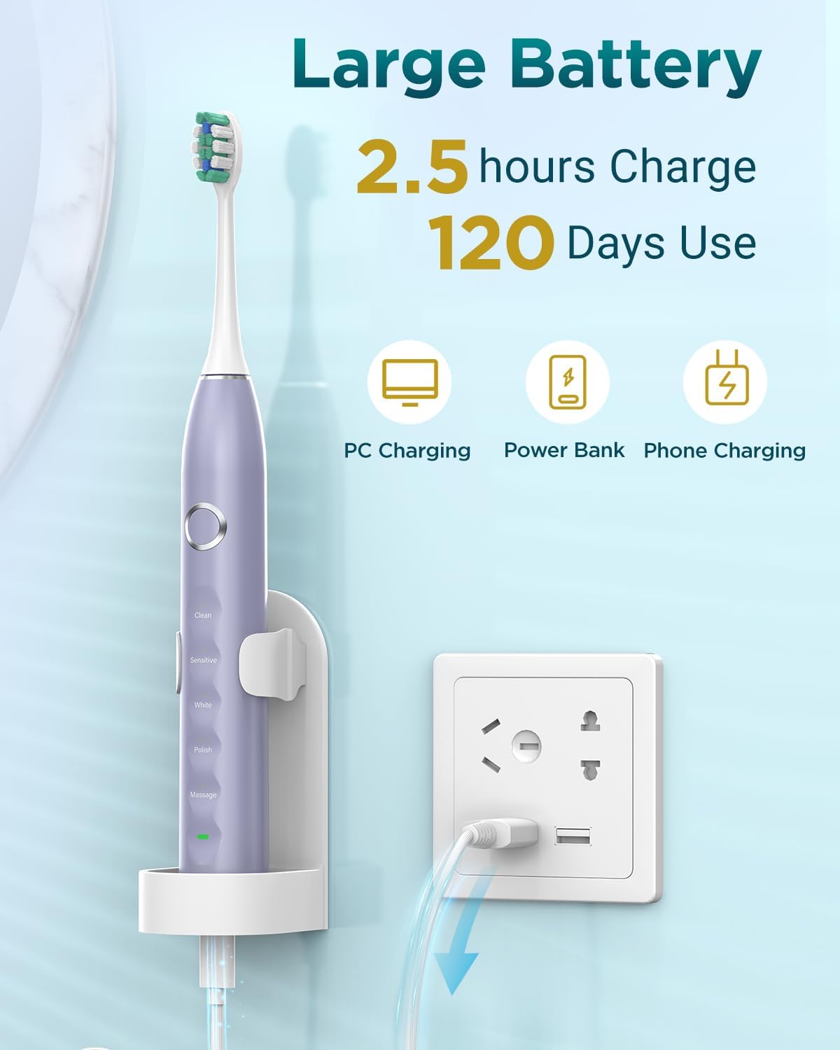120 Days Battery Life & Journey Comfort – The rechargeable electrical toothbrush lasts as much as 120 days on a single 2.5-hour quick cost. It encompasses a low battery indicator that flashes pink when the battery is low and gives ultra-fast USB-C charging. The package deal additionally features a BPA-free hard-shell journey case for 2 brush heads and a toothbrush holder. With an extra-long battery lifetime of as much as 4 months on a full cost, it’s excellent for journey.