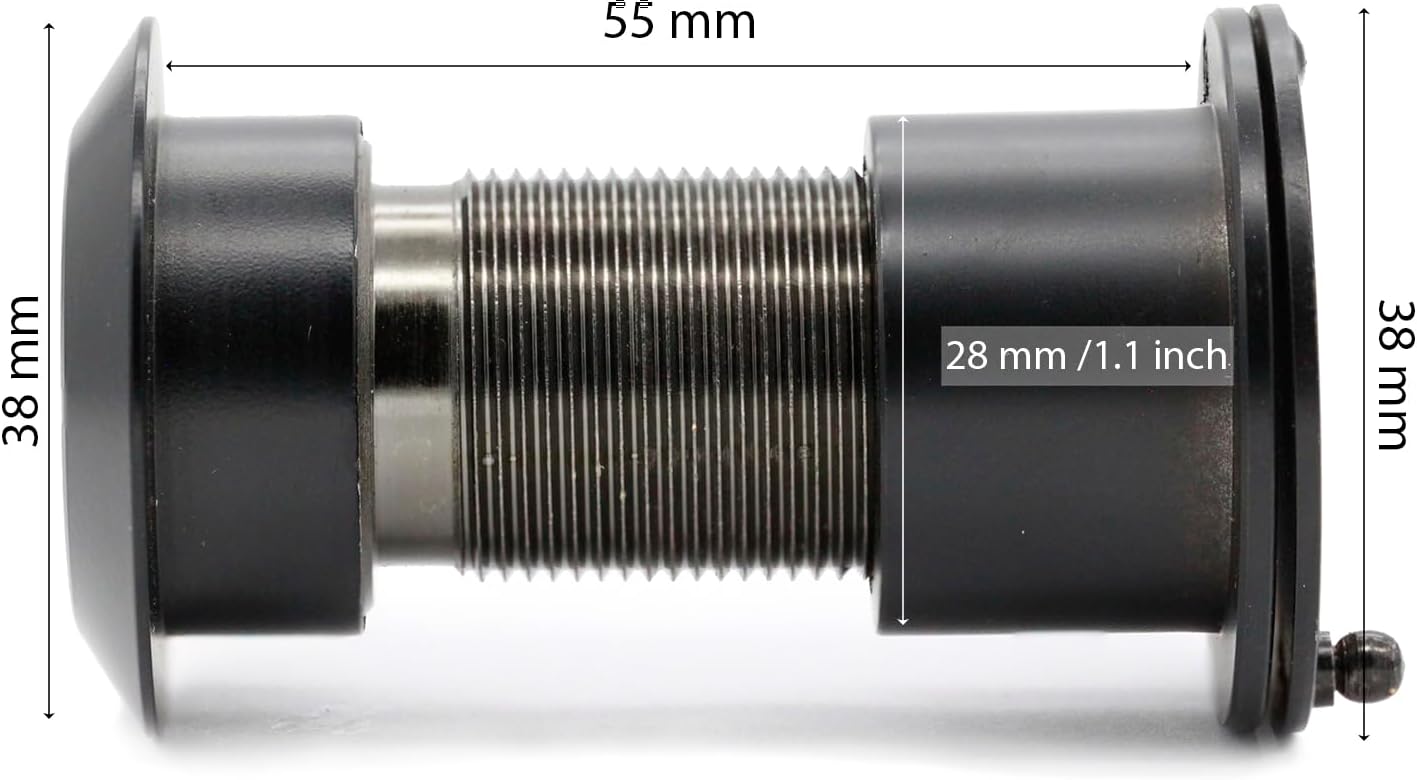 Peephole Dimensions: Entrance Eye Diameter: 1.5 in(38mm); Tube Diameter: 1.1 in(28mm); Again Cowl: 1.5 in(38mm)