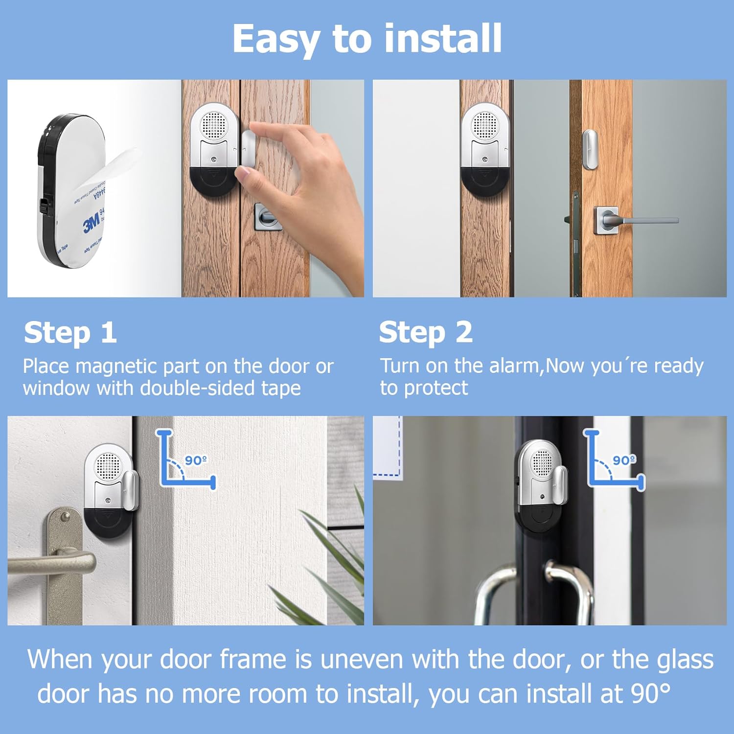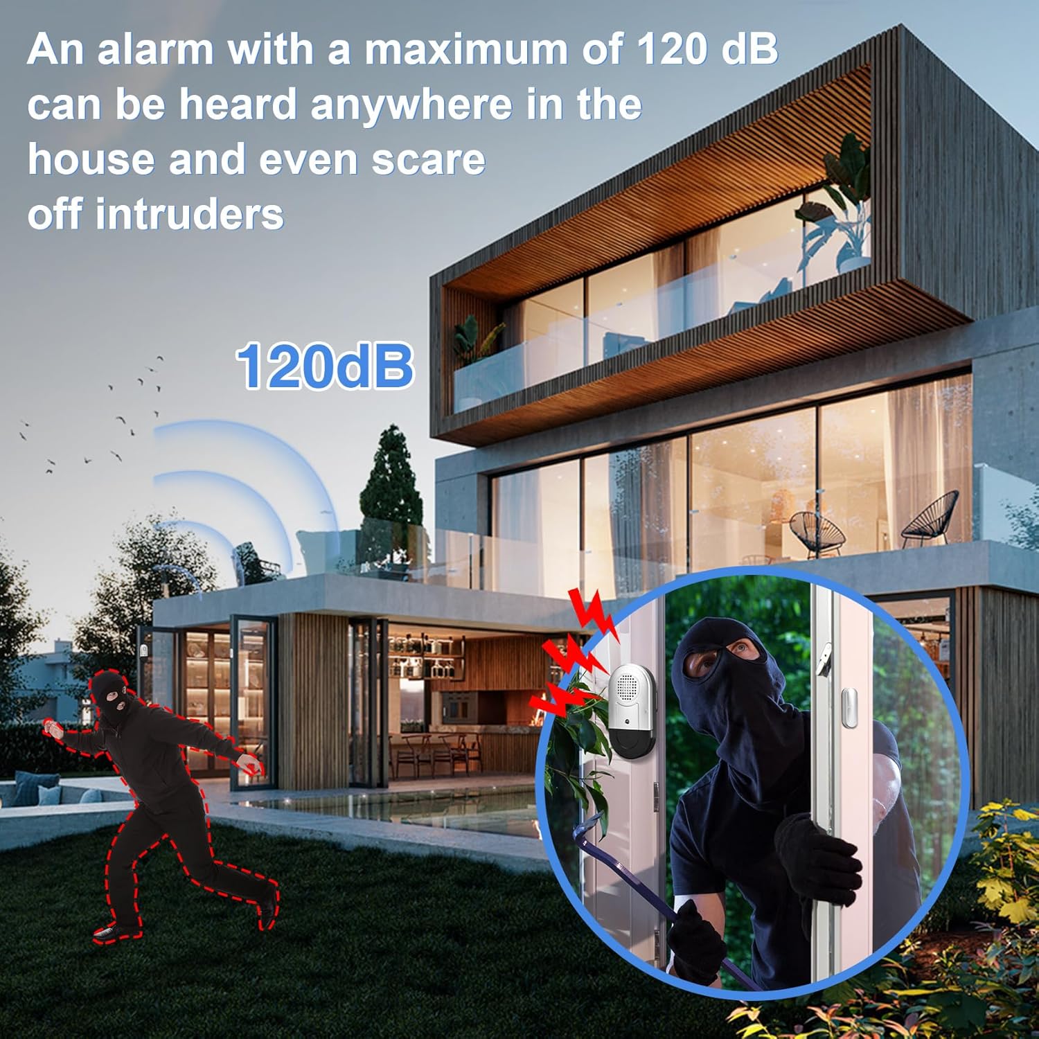 [Powerful 120dB Alarm] The door alarm contains a built-in highly effective 123dB alarm with high-volume on the spot response, not solely deters potential intruders but additionally shortly attracts close by consideration.