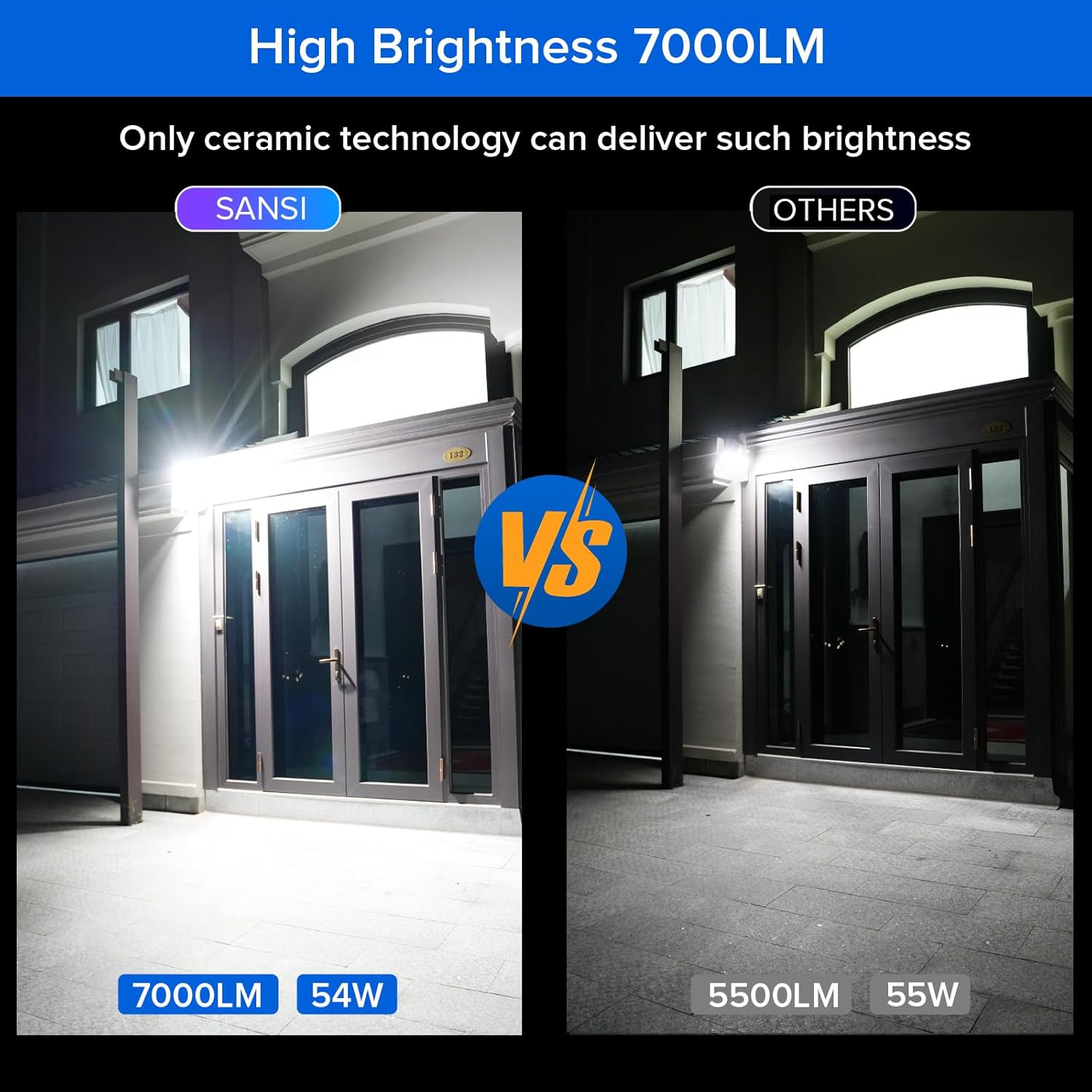 Upgraded Tremendous Shiny Movement Sensor Out of doors lights: It supplies a powerful brightness of 7000 Lumens performs effectively in storage, yard, driveways, providing enhanced brightness and a wider protection space. Undertake patented ceramic temperature management system, and reaches the very best Degree I warmth dissipation normal, it’s going to present extra power environment friendly output and an extended lifespan, preserve 90% brightness after 2 years of working, in contrast with others gentle will lose greater than 50% brightness