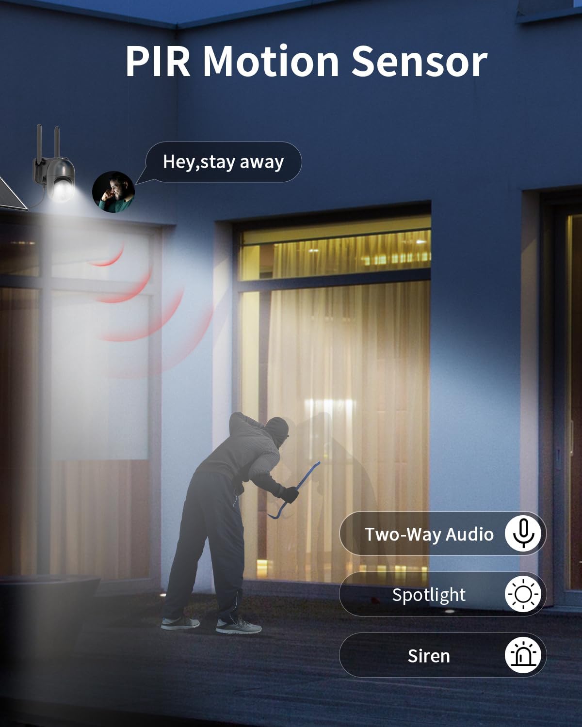 【PIR Movement Sensor & Two-way Discuss】 Outfitted with a extremely delicate PIR movement sensor, this wi-fi safety digital camera detects motion by means of warmth signatures and sends immediate alerts to your cellphone. The sensitivity of the movement detection could be adjusted through the app for customized monitoring. Moreover, the digital camera features a two-way discuss perform, enabling seamless communication with guests, supply personnel, or pets by means of its built-in intercom system.