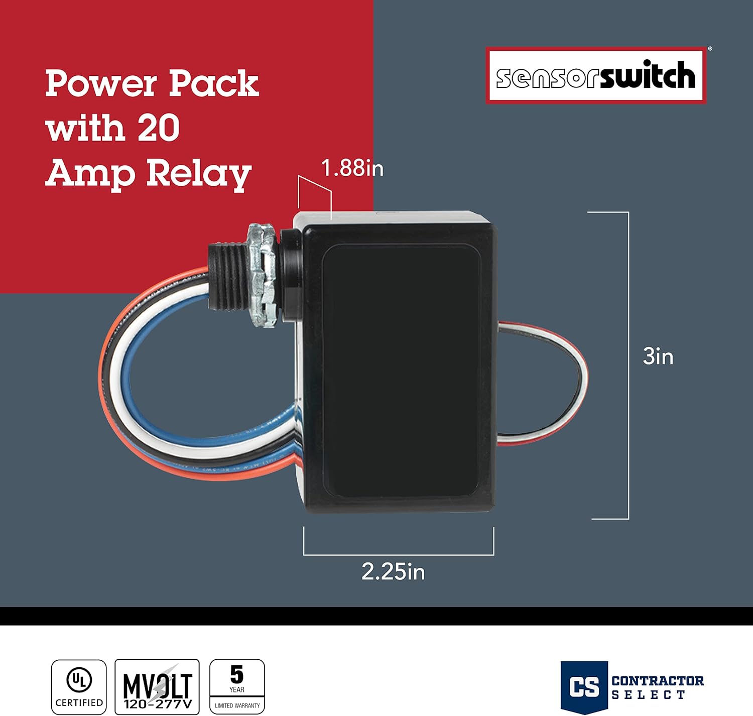 Sensor Switch Contractor Select Power Pack Relay Circuit Protection for Motion Sensors, 120/277 VAC, Black (PP20)