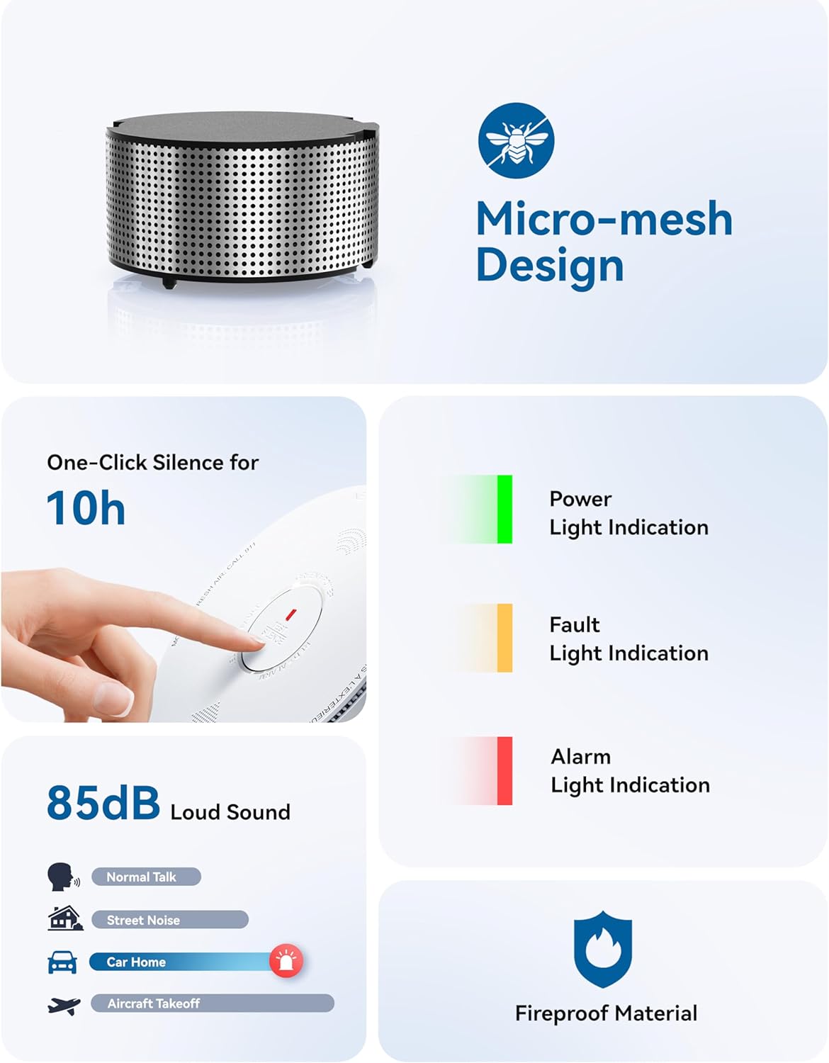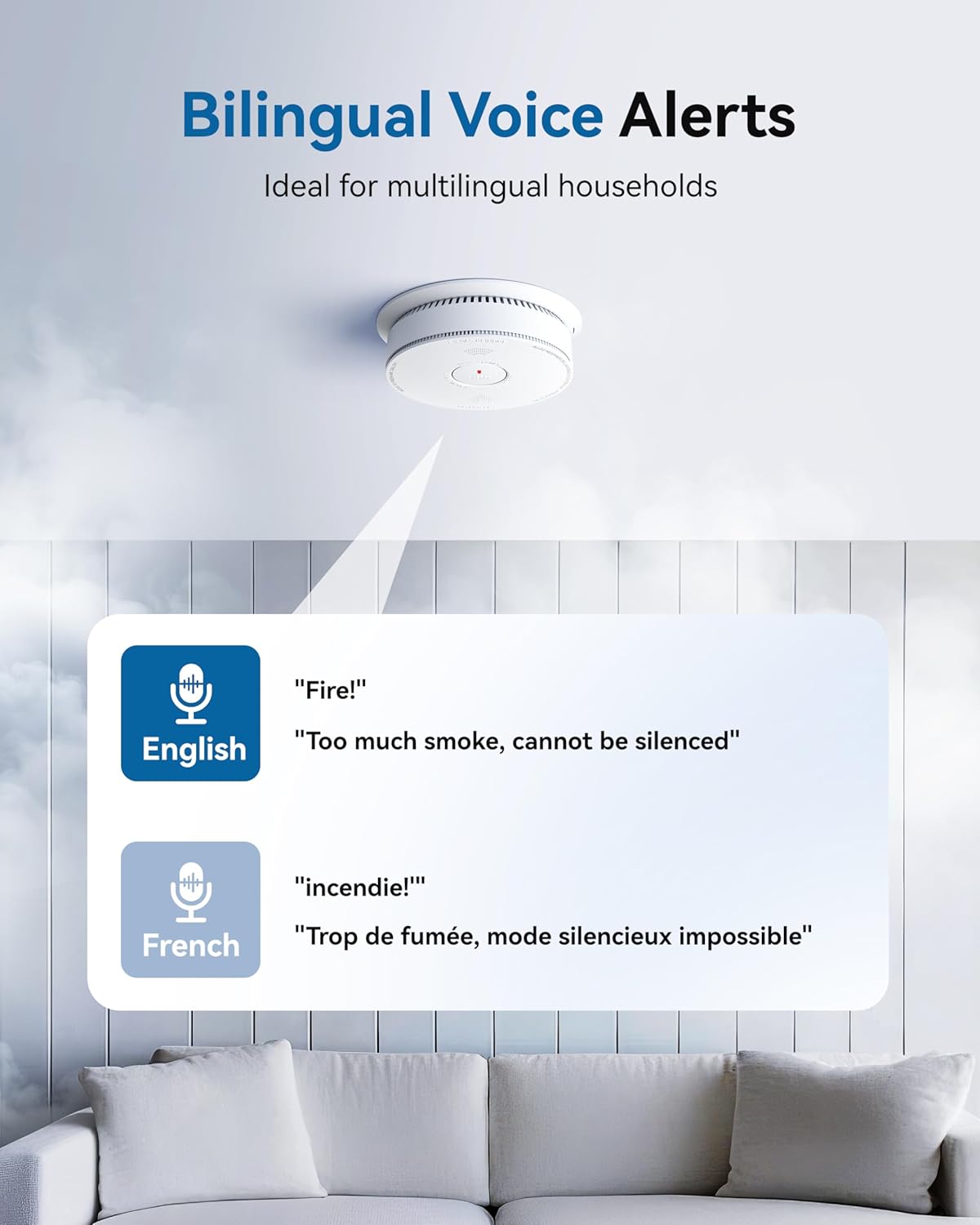 BILINGUAL VOICE ALERTS: This fireplace alarms smoke detectors options voice alerts in each English and French, Smoke alarm: “Hearth!”,”Incendie!”, guaranteeing all members of the family can rapidly perceive and reply. Offering an audible warning in extra of 85 decibels.