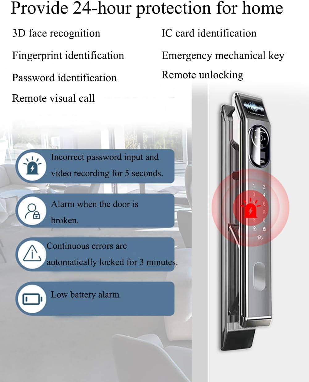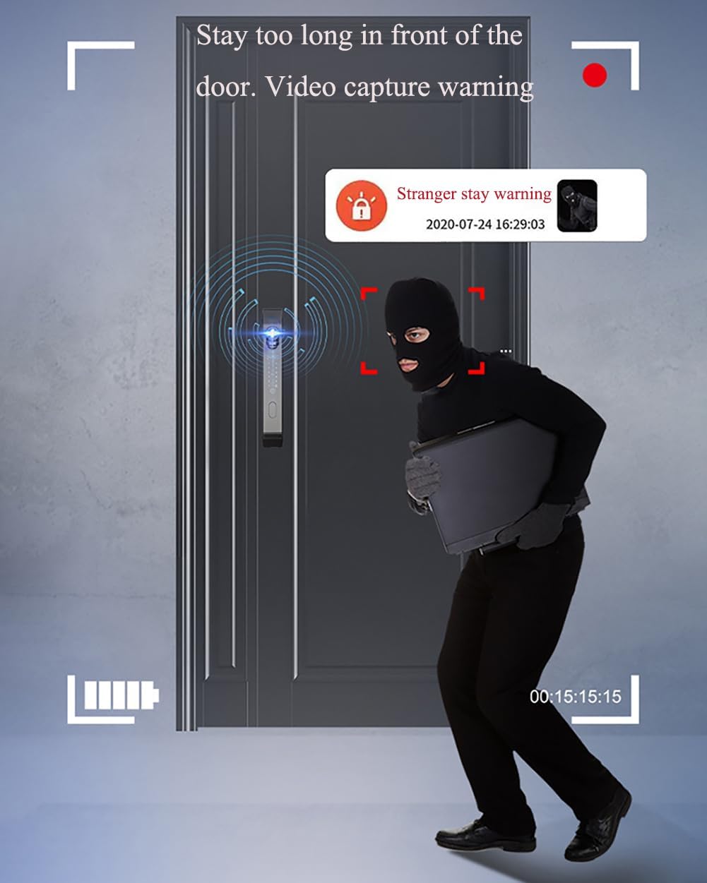 Safety: Sensible Lock With Digicam repeatedly enters the mistaken password and pries the door lock. In case you keep in entrance of the door for a very long time, you’ll routinely add the video to your cellular APP and go away a report to your inquiry.
