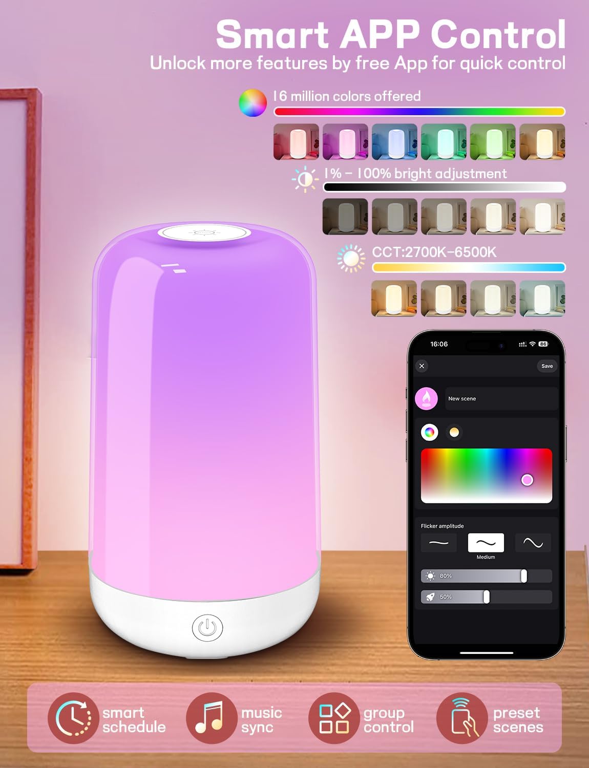 Unique Design & Eye-Pleasant: This nightstand lamp boasts a contemporary design and is crafted from PC materials, providing a high-end texture, Its upscale look is complemented by smooth, vibrant illumination that’s mild on the eyes, no flicker