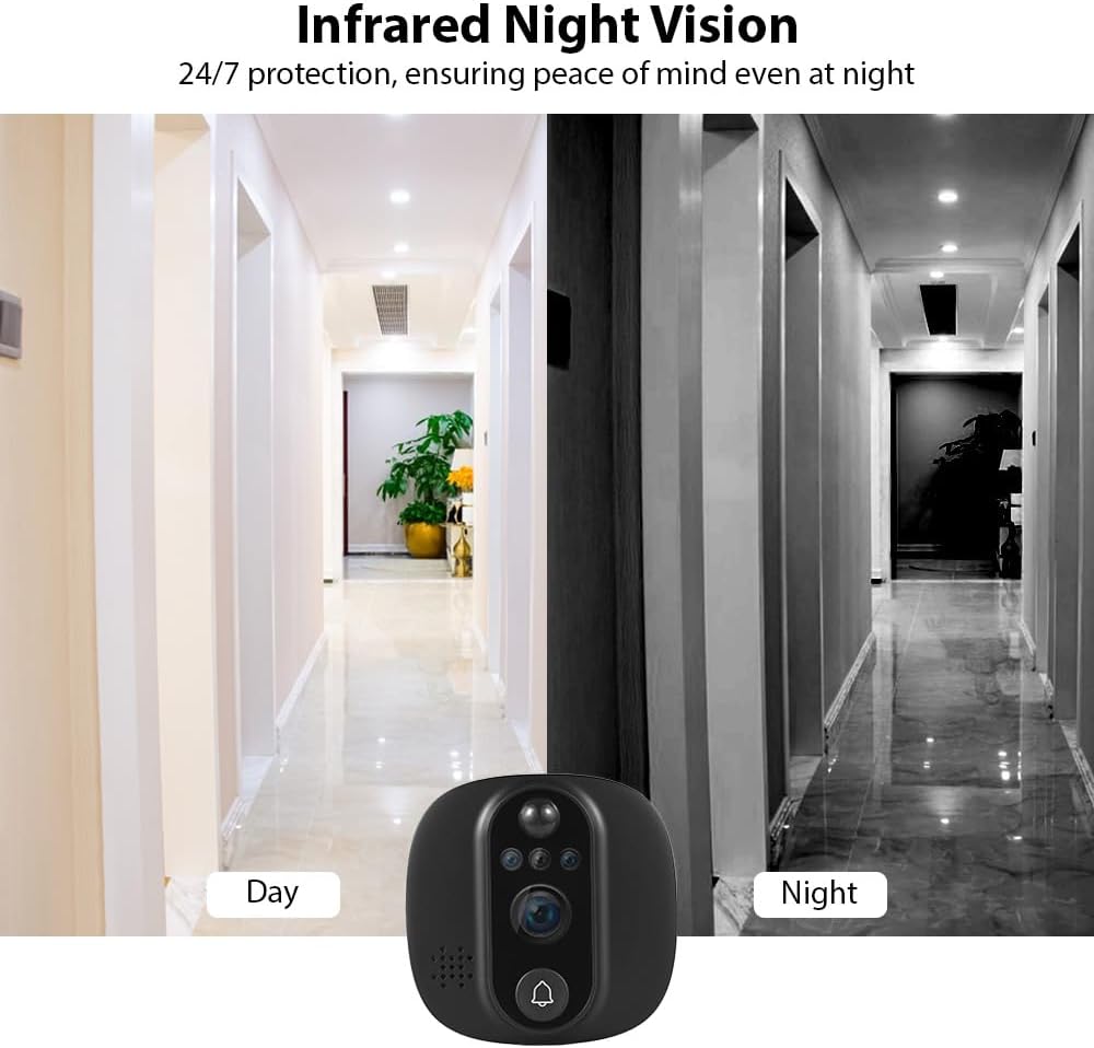 【Rechargeable and Sturdy】: The doorbell digital camera is powered by a built-in 3500Ah lithium battery and comes with a charging cable for straightforward recharging. It is designed to resist temperatures from -20 to 55°C, guaranteeing dependable efficiency in varied climate situations.