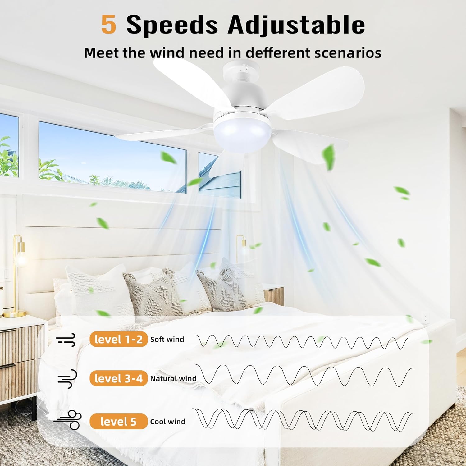 Versatile and Fashionable Design: Kitcanis versatile socket fan mild combines cooling airflow with brilliant illumination, making it a sensible addition to any house. Screw in ceiling fan in mild socket boasts long-lasting efficiency and a trendy design that enhances numerous inside decor kinds, enhancing the general aesthetic of any house.