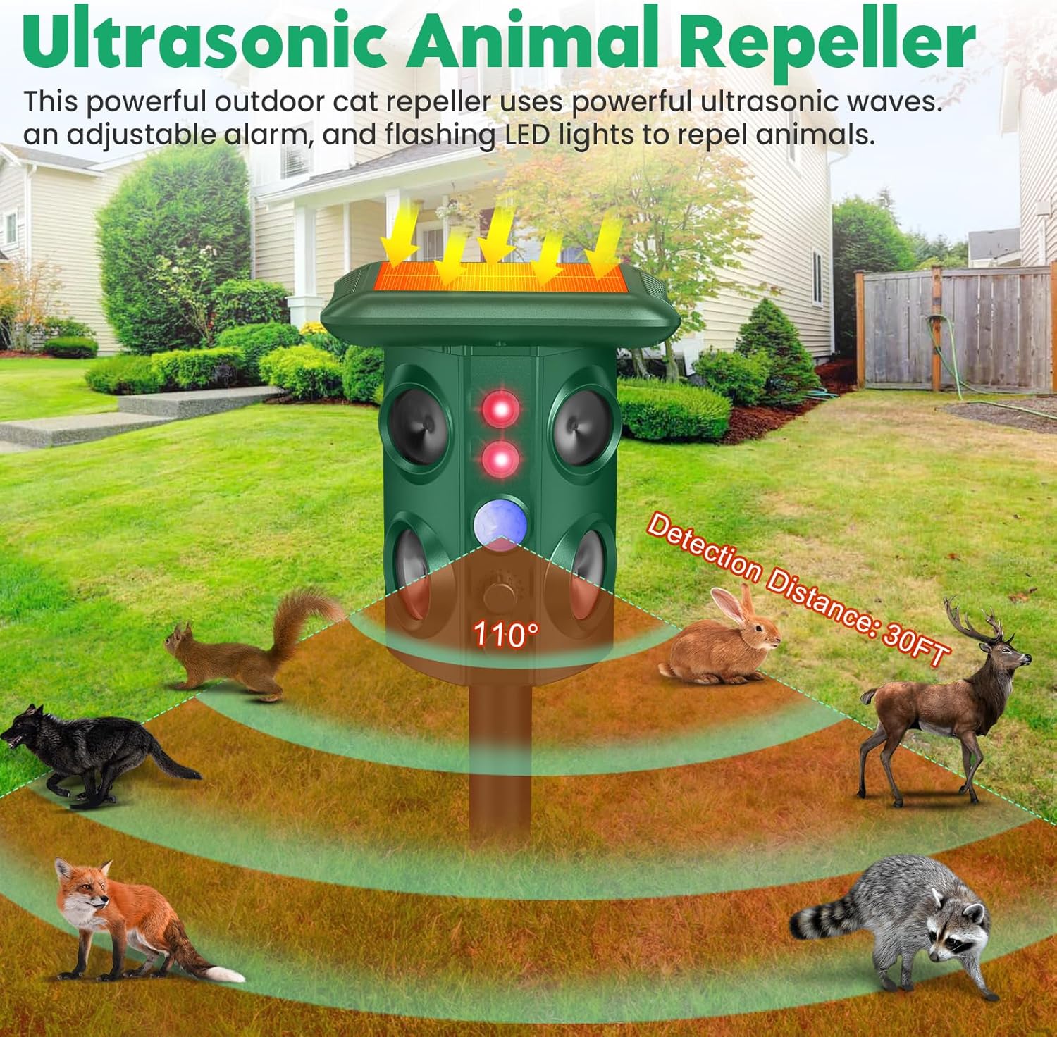 Preserve your out of doors house protected and serene! Our solar-powered animal repellent, which makes use of LED gentle and ultrasonic waves, deters snakes, moles, raccoons, cats, canines, and extra. It’s straightforward to put in and waterproof.